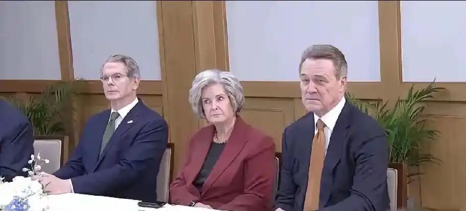 这次会晤,仔细的人都能看出来,气氛有点不对。特朗普坐在主位上,神情出奇地平静,甚