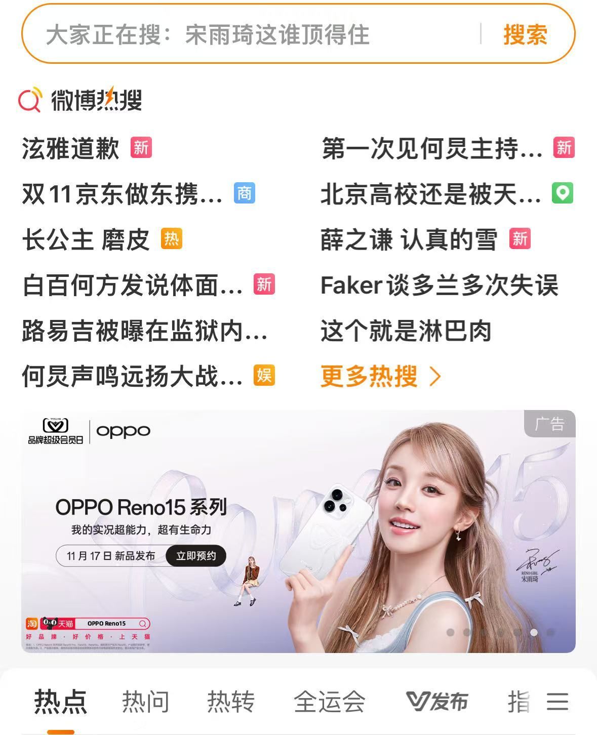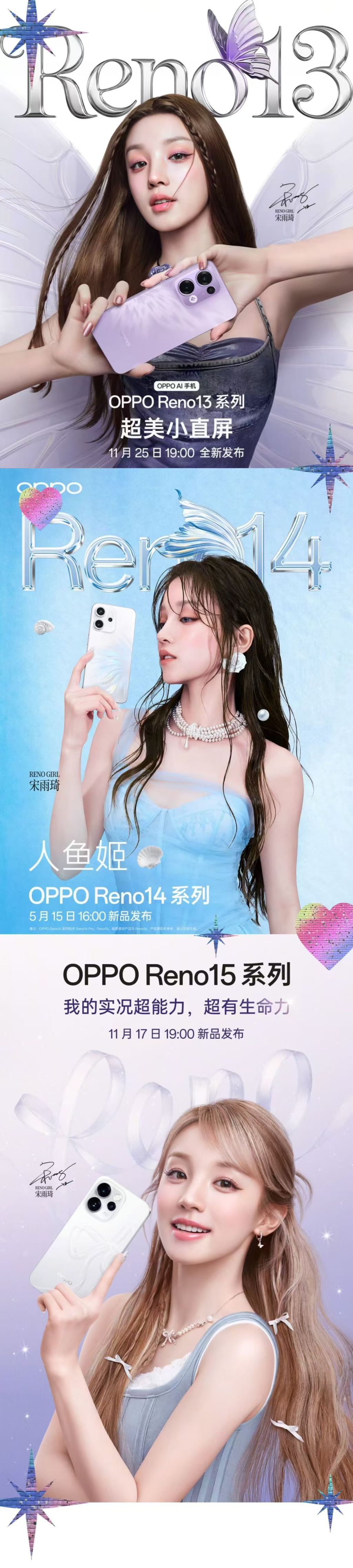 宋雨琦[超话] OPPO第三次官宣宋雨琦为Reno代言人,这含金量谁懂啊!宋雨琦新款OPPOReno15 蝴蝶结女孩绝美亮相有了✨ 连续三代稳稳拿下代言,不得不说雨琦的潮流感与Reno 系列的美学追求完美同频。OPPO与宋雨琦也算是一路同行双向奔赴了OPPO Reno15