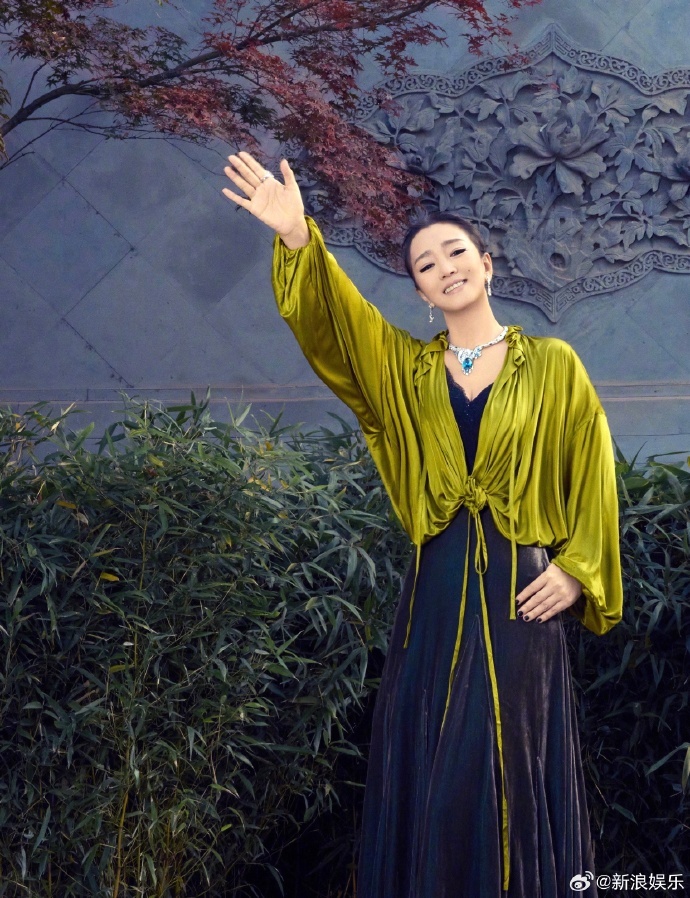 巩俐大花气场巩俐合照主理人 巩俐以墨绿色丝绒长裙搭配橄榄绿丝绸外套惊艳亮相,低盘发衬得气场全开。丝绸的光泽与丝绒的质感碰撞,复古配色尽显大花的高级品味,每一次亮相都是时尚教科书级别的演绎~