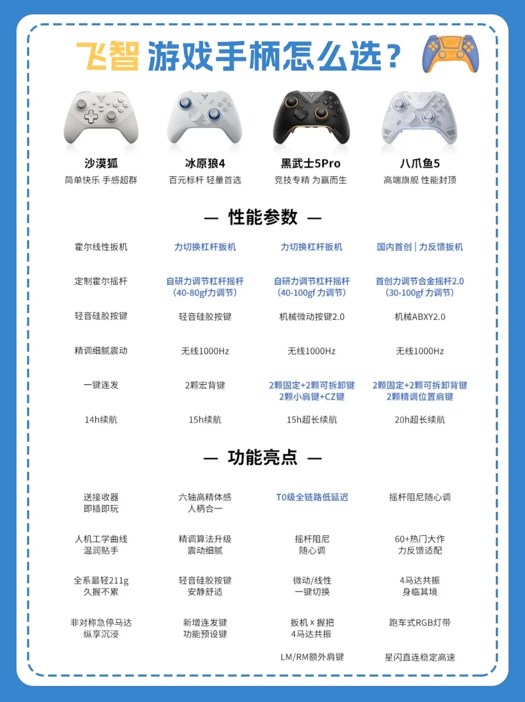 这是今年6月上市的手柄,摇杆采用了合金轴承与杠杆传力结构,支持30-100gf超广域力度调节,玩赛车游戏时,长期跑图手不累,玩FPS游戏时,力度像拉弓般沉稳。