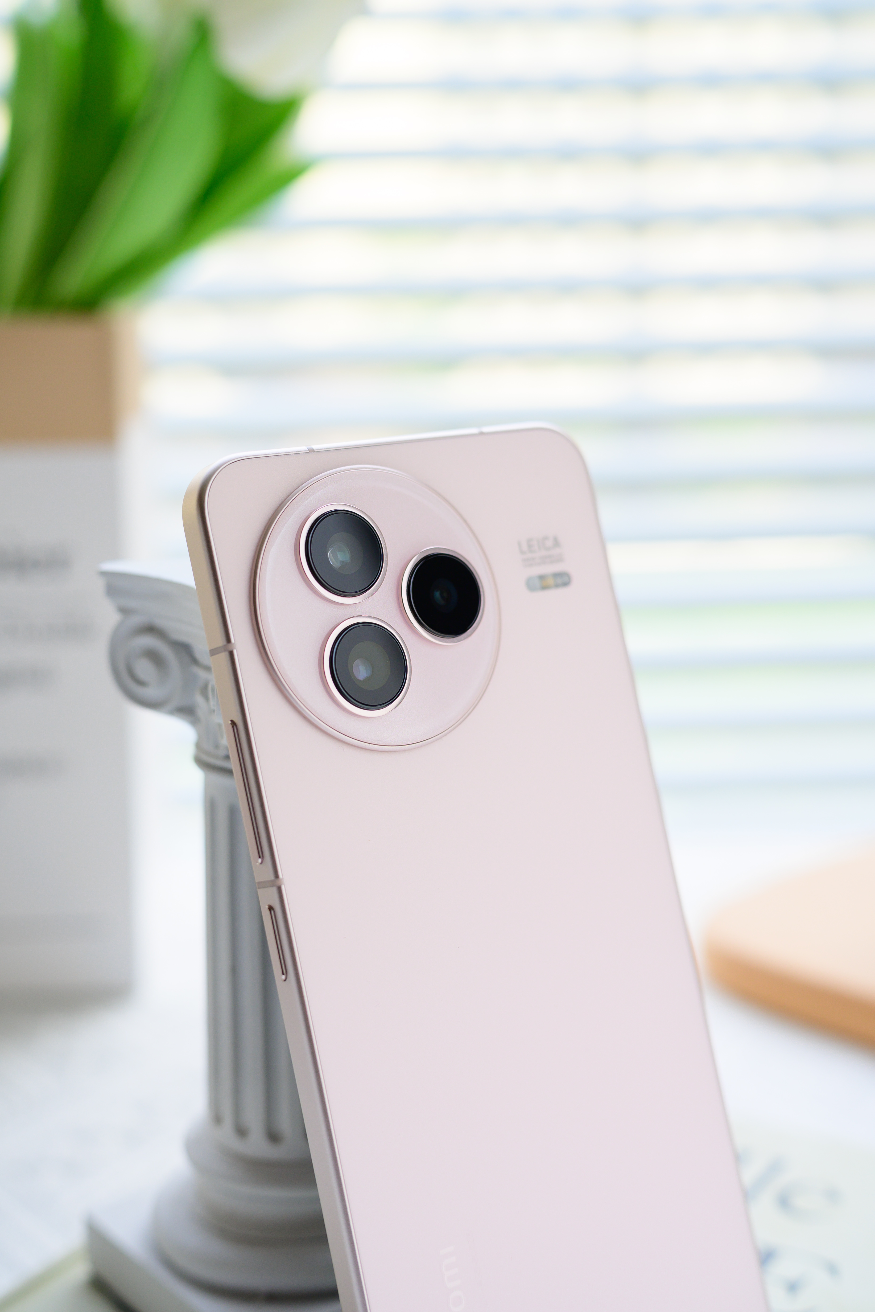 我拿到 Civi 5 Pro 的第一印象后盖触感材质,非常细腻的 AG 玻璃,手感材质和中低端机完全不同,可以看出 CMF 是下了本的。整机手感很好,纯平后盖、小米 15 系列的同款反包式金属中框让 Civi 5 Pro 的手感很不错。