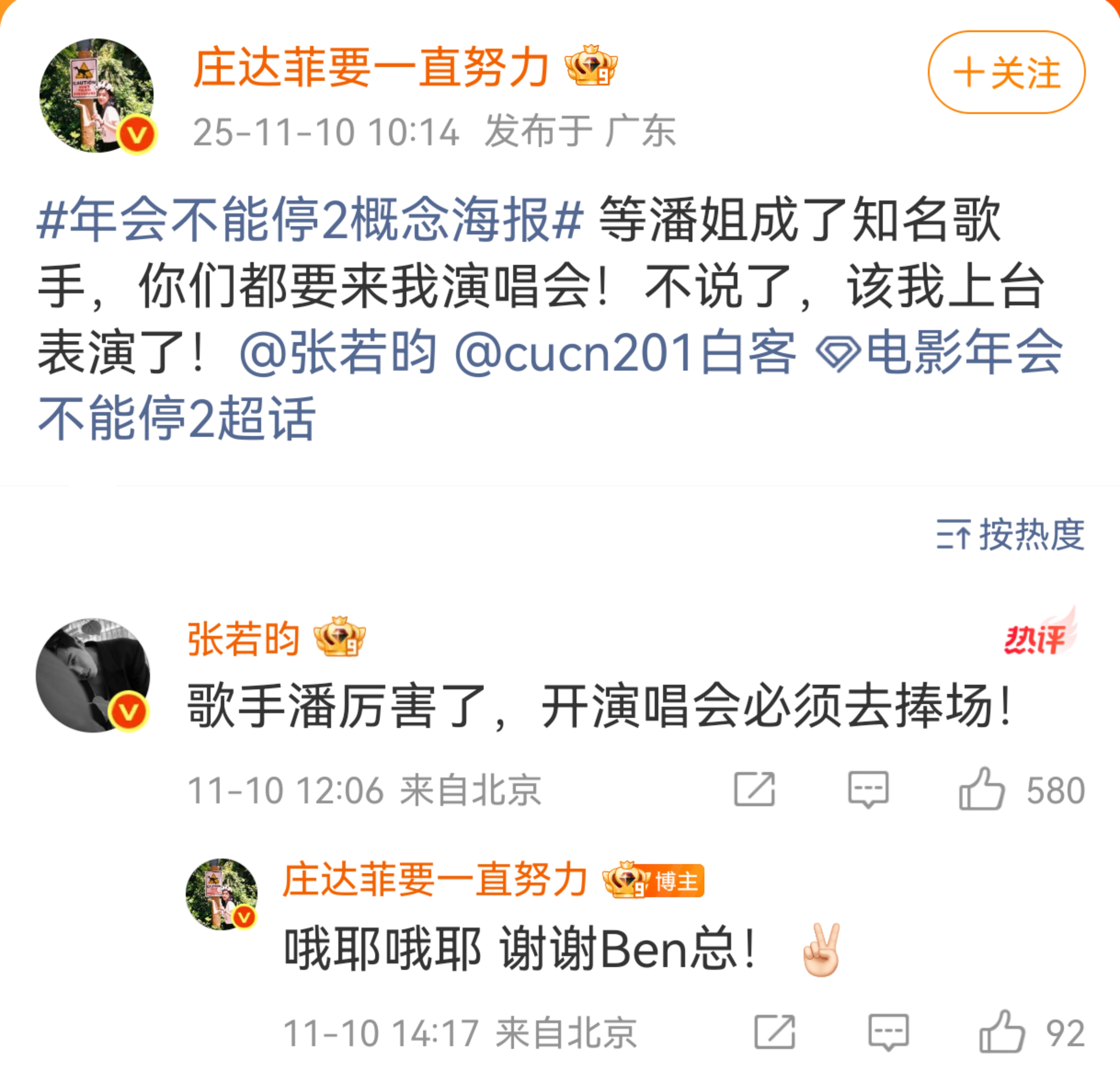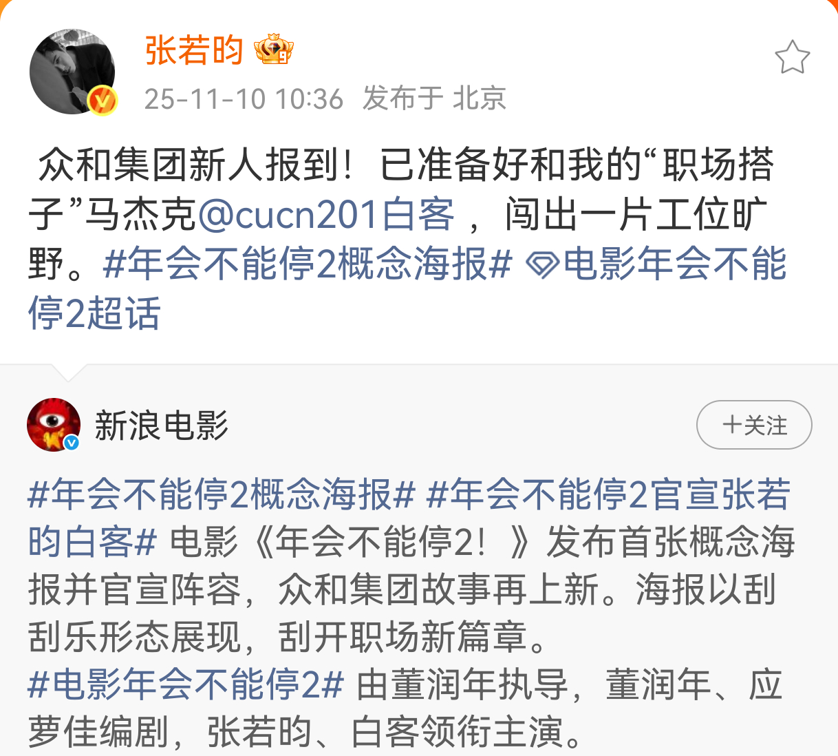 张若昀新电影演职场新人存一个《年会不能停2》首次官宣的主创互动刘奔,英文名Be