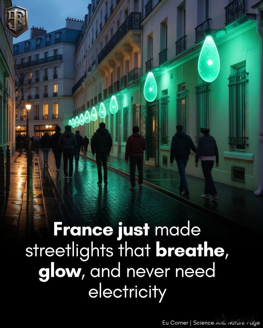 法国研发出利用活藻发光的生物发光路灯 在图卢兹市中心,法国科学家们研发出一种无需电力,而是由活藻发光的路灯。这些透明的灯柱内装有充满微藻的管子,这些微藻白天吸收二氧化碳,夜晚则通过自然生物发光发出柔和的蓝绿色光芒。 每盏灯的亮度足以安全照亮人行道,且无需消耗电网能源。灯柱内的藻类依靠小型水泵和附近街道的碳源不断自我更新。维护工作量极小——只需偶尔补充营养液并接受阳光照射即可。 法国Glowee 公司开发的这种生物反应器路灯利用海洋细菌(如 Aliivibrio fischeri)的生物发光特性发光。这些细菌生活在充满盐水和营养物质的透明管道中。细菌通过一个涉及氧气的化学反应发光,这个过程不需要传统电力。在某些系统中,微藻在白天通过光合作用吸收二氧化碳并释放氧气,储存的能量可用于夜间发光或为备用LED灯供电,使其成为一个自我维持的系统。 这些灯是碳中和的,可减少光污染,并能吸收二氧化碳,副产品是富含氧气的干净水。
