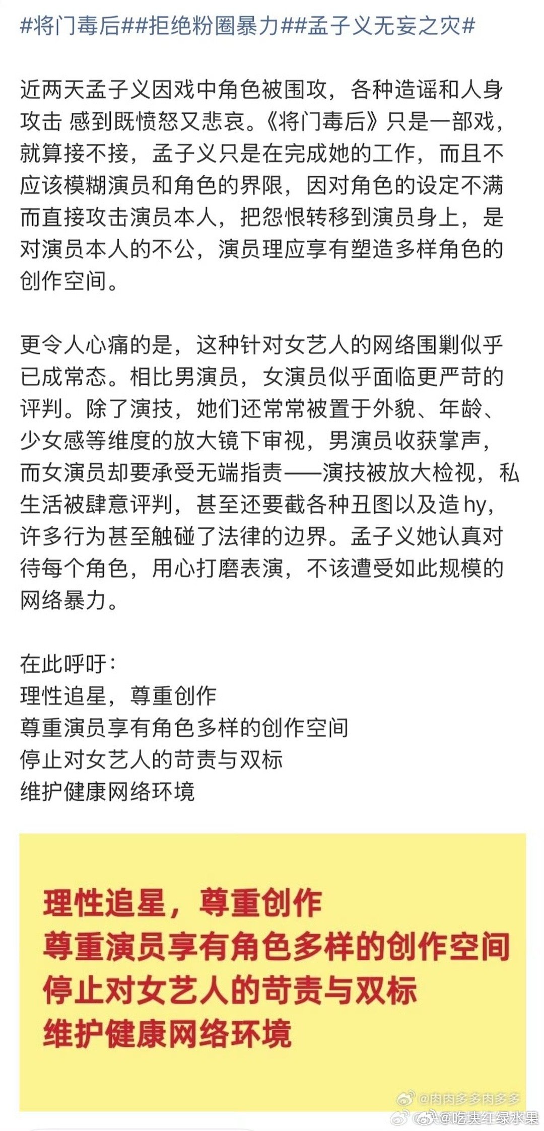 王鹤棣大粉也发文了:将门毒后没定孟子义!