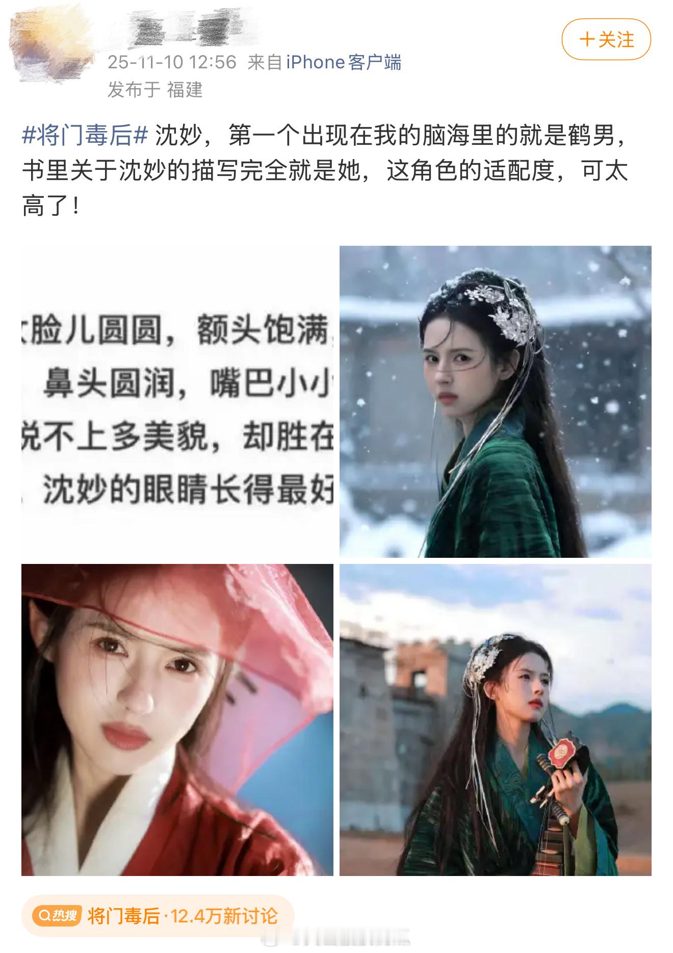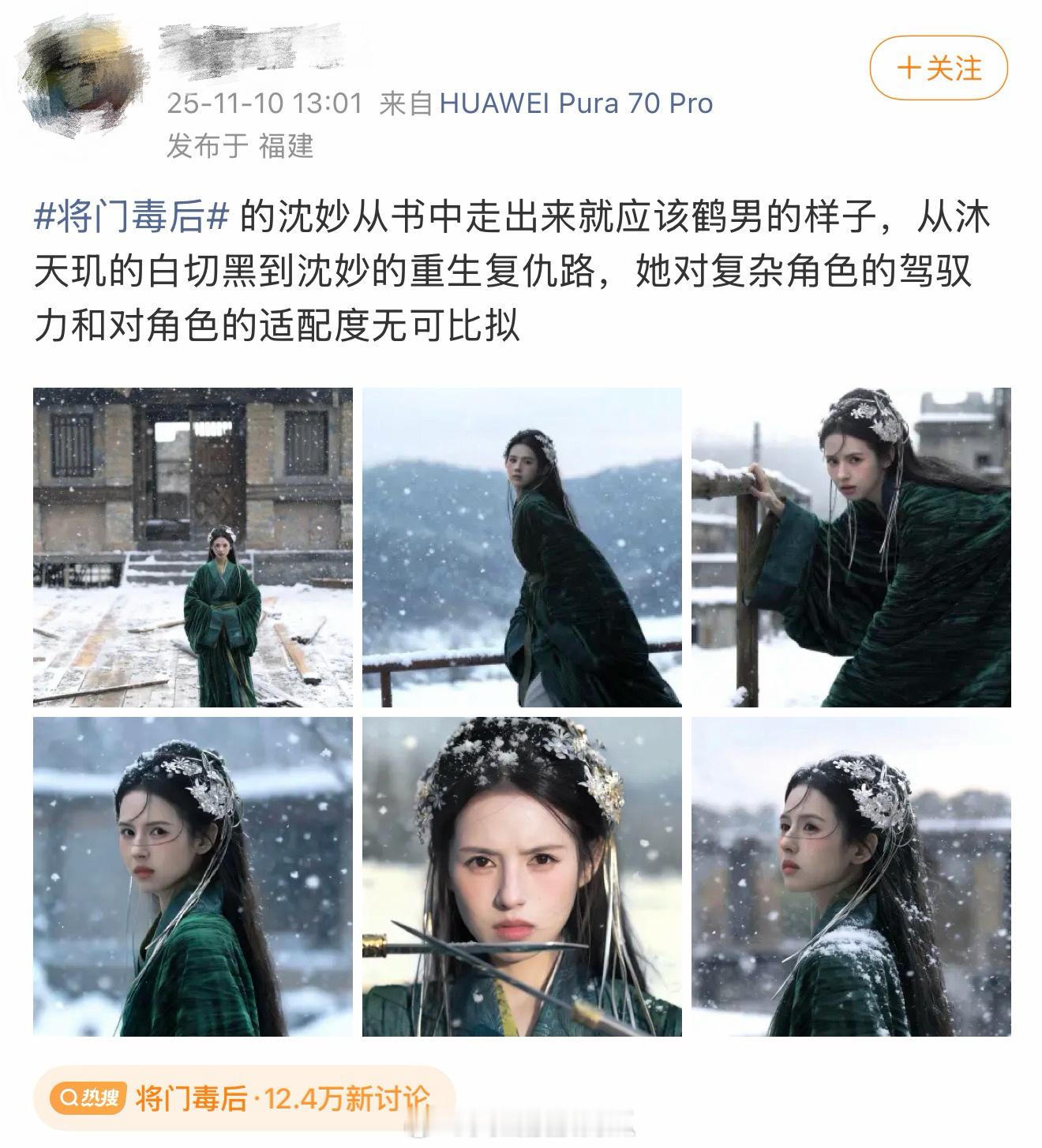 将门毒后 鹤男 演沈娇简直是神仙选角!古装适配度无可挑剔,自带的古典气质让沈娇的形象瞬间立体,狠狠期待她的演绎