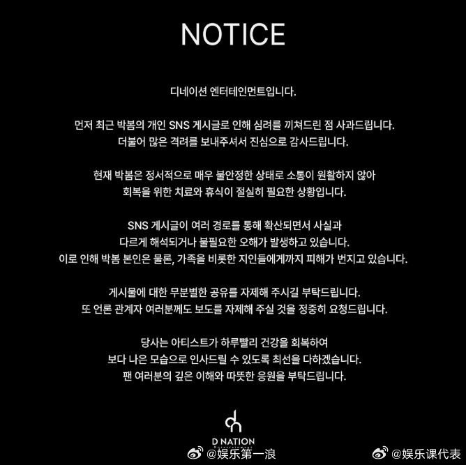 朴春说自己没问题朴春 从一开始就完全没问题 日前,朴春发文驳斥健康亮红灯的说法,强调自己状态良好,并写道:“朴春从一开始就完全没问题。大家别担心。”她表示,此前经纪公司声称她健康出现问题的说法完全不实。