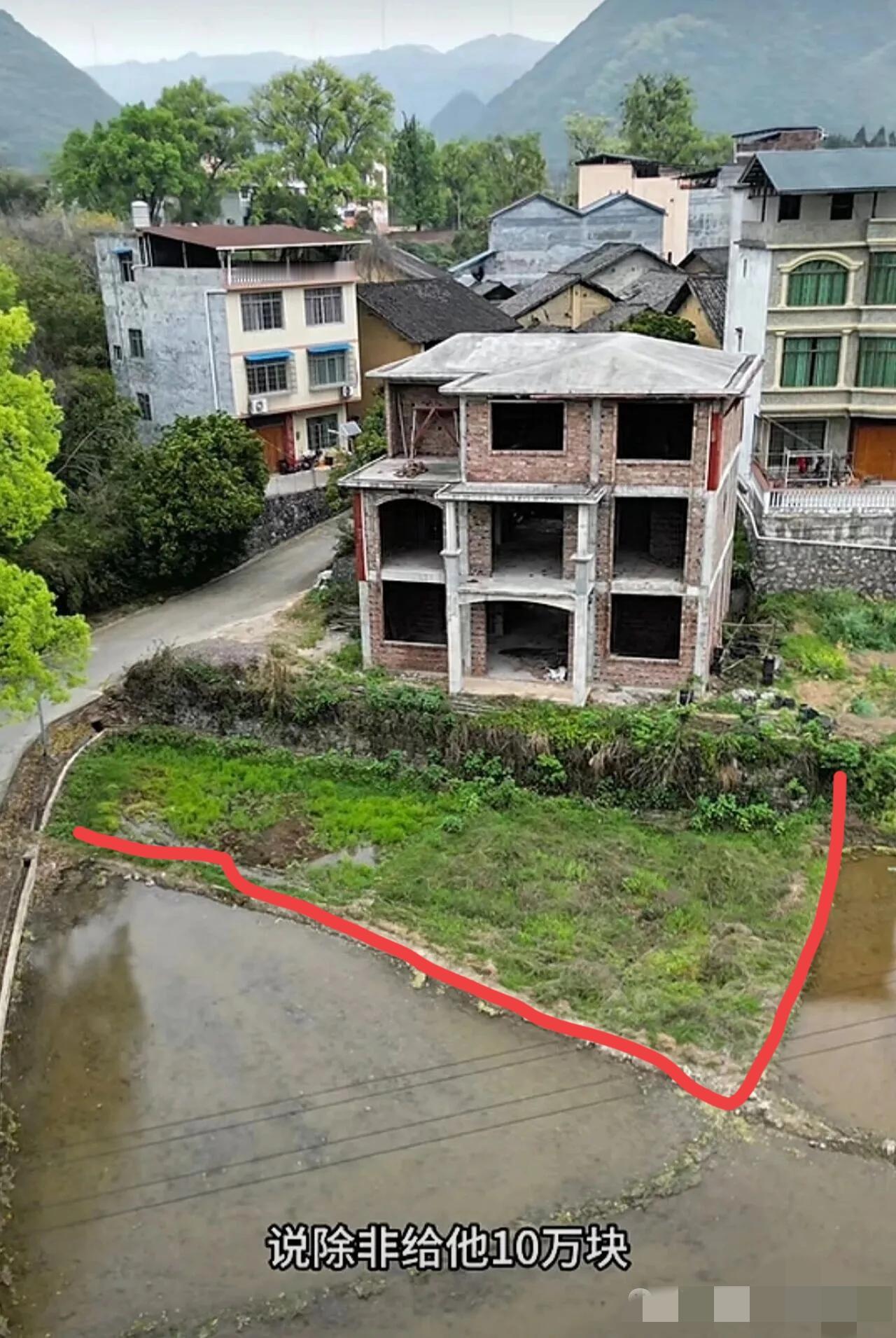 房子建好了,没有出门路,想把前面这块小荒地买下来,建房前说好3万卖给我的,如今房子建好了,他家说要10万了,少一分也不卖,搞得现在进退两难,好纠结!!! 老师傅们帮看看,这点地值10万吗?该怎么办?给点建议!谢谢![祈祷]