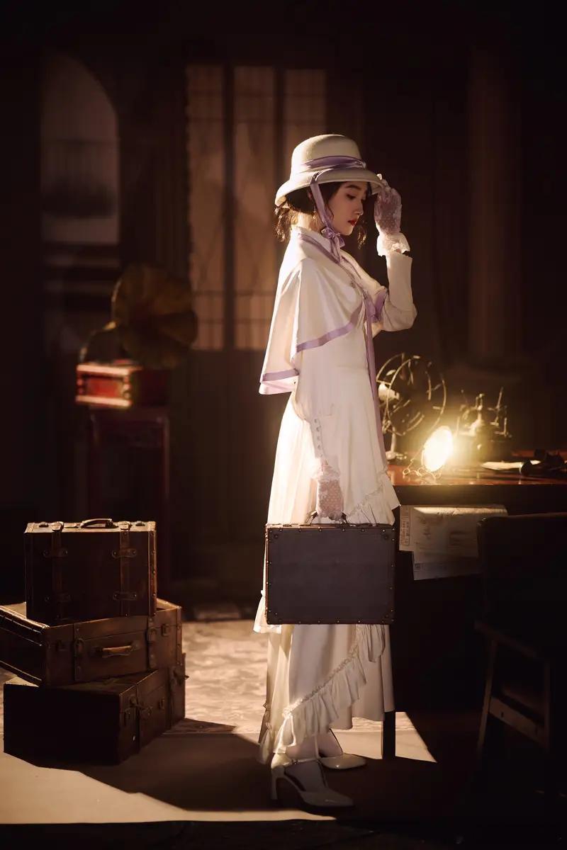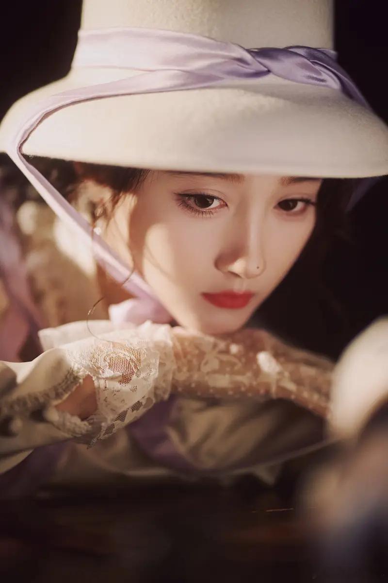 关晓彤白色千金洋装搭配圆顶礼帽 尽显复古温婉气质