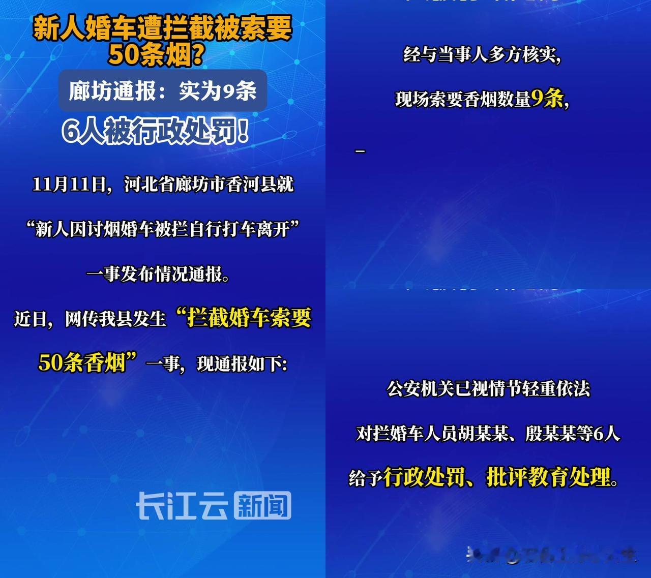 结婚当天最崩溃的事,接亲卡门不算,婚纱勾丝也不算,而是, 婚车刚出小区3公里,被6个陌生人围了!张口就要9条烟,说“道喜得给够”。 交涉20分钟没谈拢,新人只能换乘自家车去酒店,婚车司机都懵了。网传“50条”是司机口误,实际9条,可就算9条,也够买2个月早餐钱了! 咱们见过的闹喜,是堵门要包烟、敬茶闹新郎,热热闹闹沾喜气;可拦婚车要整条烟,是借着喜字耍横! 以前是“讨彩头”,现在变成拦路要好处,这哪是喜?分明是给喜事添堵! 有人说“重点不是数量,是拦路”,太对了!就算只要1条,拦着别人一辈子一次的大事,也是踩了底线,谁愿意被陌生人架着脖子要东西? 你们结婚/参加婚礼时,见过最过分的闹喜是什么?你觉得闹喜的“度”该画在哪?是一包烟?还是根本不能拦路?