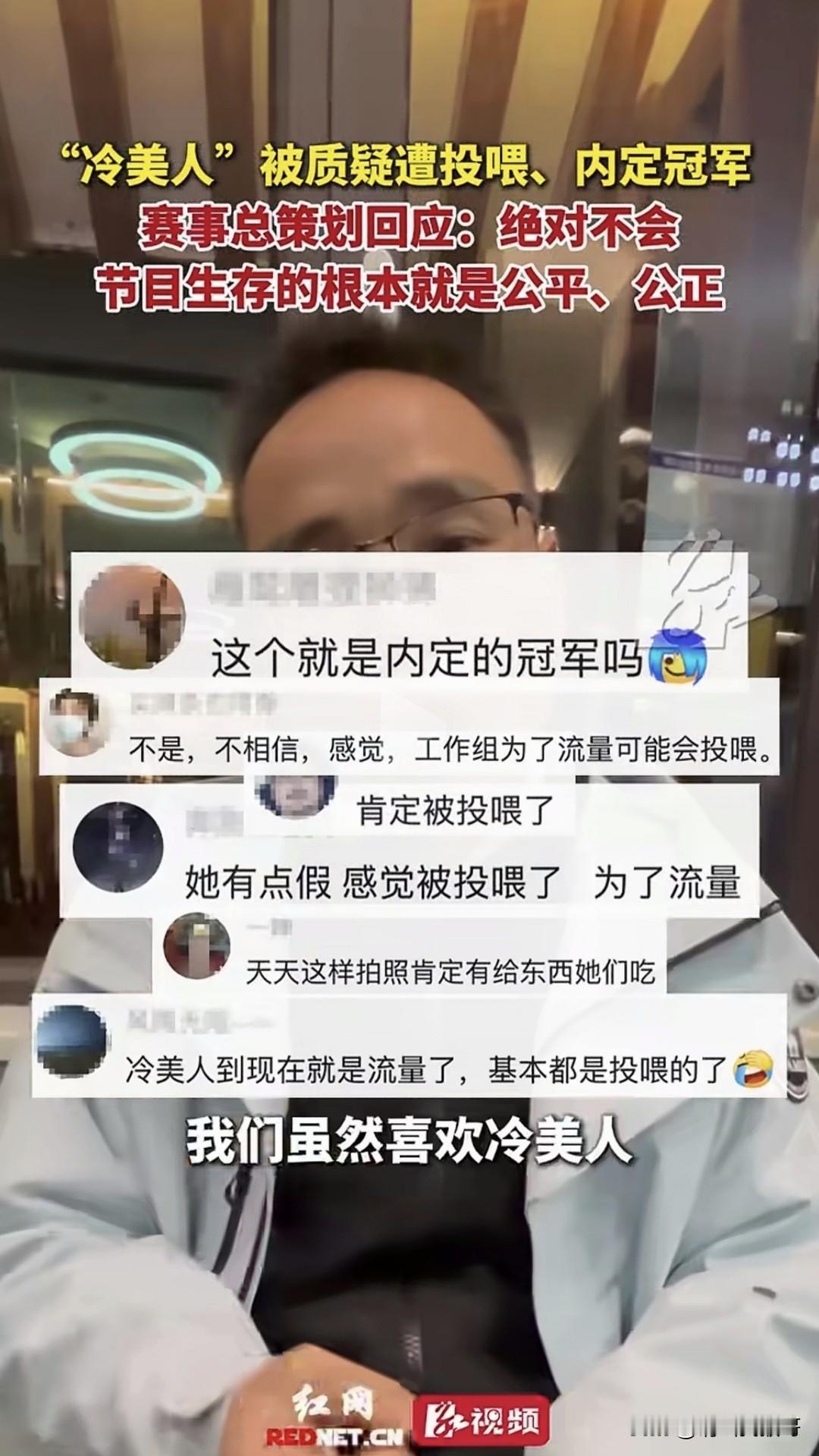 看吧,“冷美人”稍微有点名气,就引来一片质疑,忍饥挨饿瘦成皮包骨头是有目共睹的,这会居然有人质疑比赛的公平性,说她作为一个女人能抗到现在,就是节目组内定的冠军,毕竟那么多男的到现在,也有人开始扛不住逐步选择退赛。 但节目组总策划回应“绝对不会,节目生存的根本就是公平、公正”。但网友不买账,说节目组为了保持热度和流量,特意给她投喂,这样她就能一直坚持下去不可能退赛了。 你们觉得这个里面有猫腻吗?