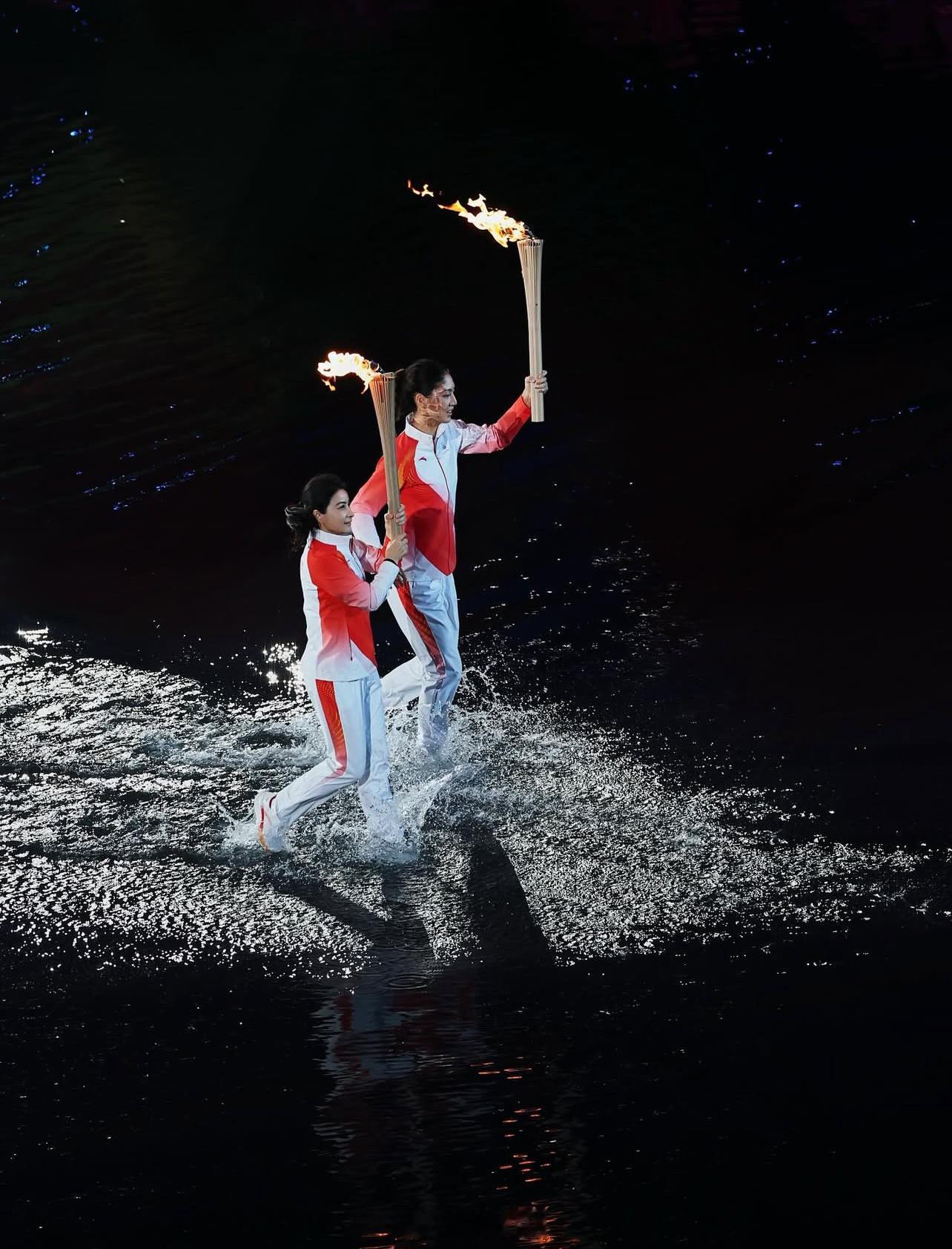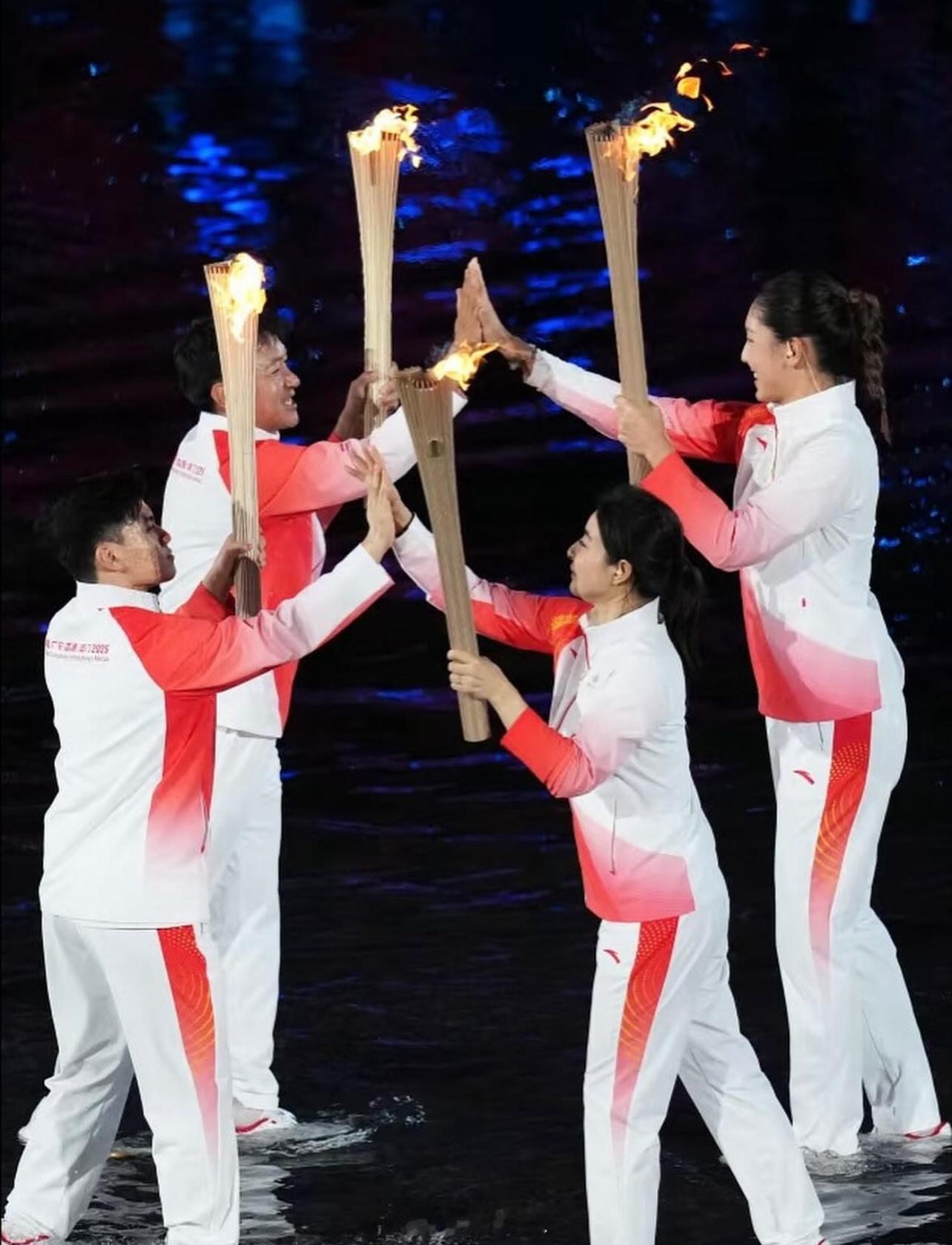 全运会开幕式,王欣瑜和郭晶晶携手担任第三棒火炬手