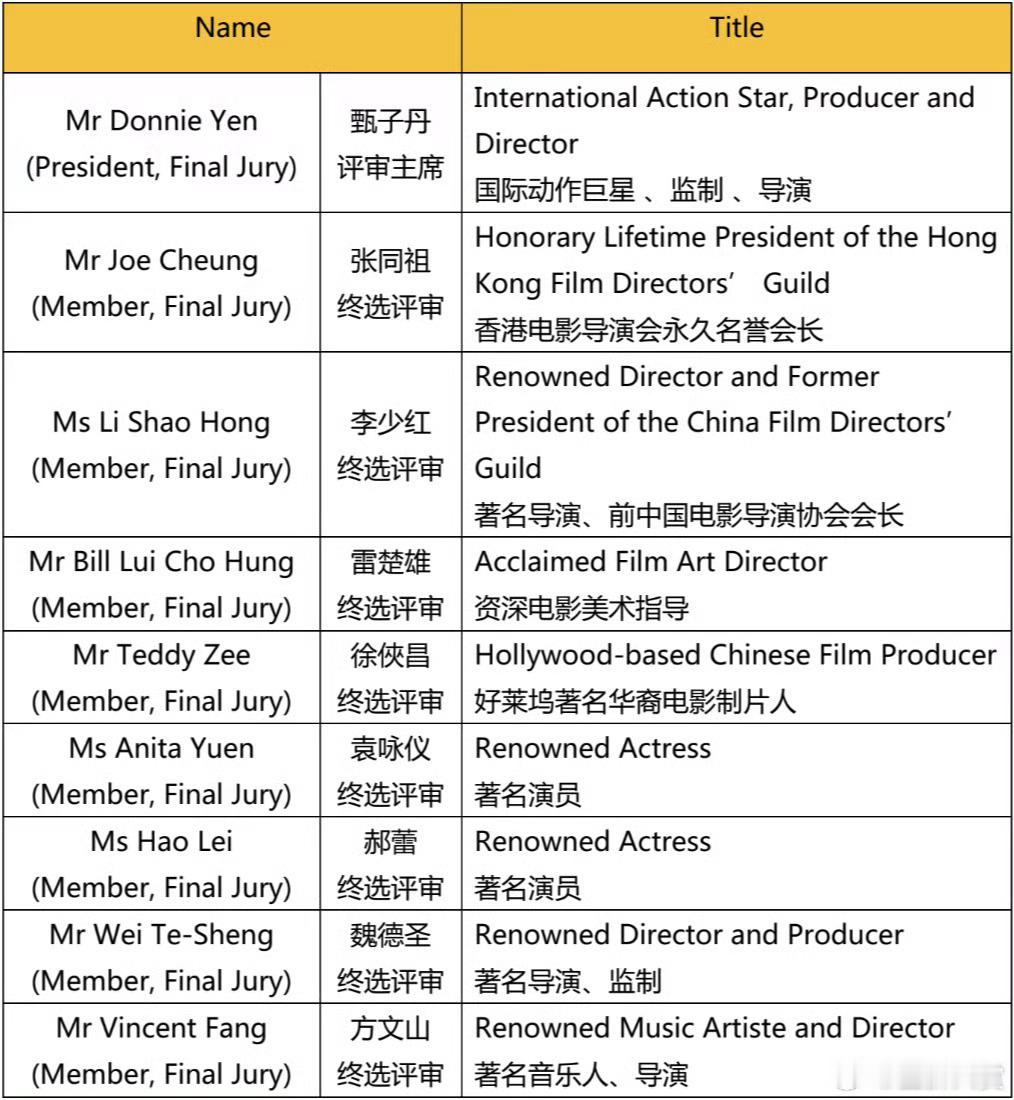 新加坡举办首届国际华语电影金狮大赏,今天公布了提名名单。这个奖由新加坡通信媒体发展局主办,是“新加坡媒体节”的重要活动之一。这几年金马奖越办越小,金像奖缺钱、缺片源快办不下去了,金鸡奖的格局一直没打开。如果”金狮大赏”真能做大做强做专业,新加坡倒是两岸三地之外最合适的颁奖地。而官方宣传中也透露出野心:通过此平台强化新加坡作为电影艺术与文化交流“新枢纽”的地位。首届金狮大赏评审团名单:甄子丹担任评审团主席,张同祖、李少红、雷楚雄、徐侠昌、袁咏仪、郝蕾、魏德圣、方文山担任评审团成员。