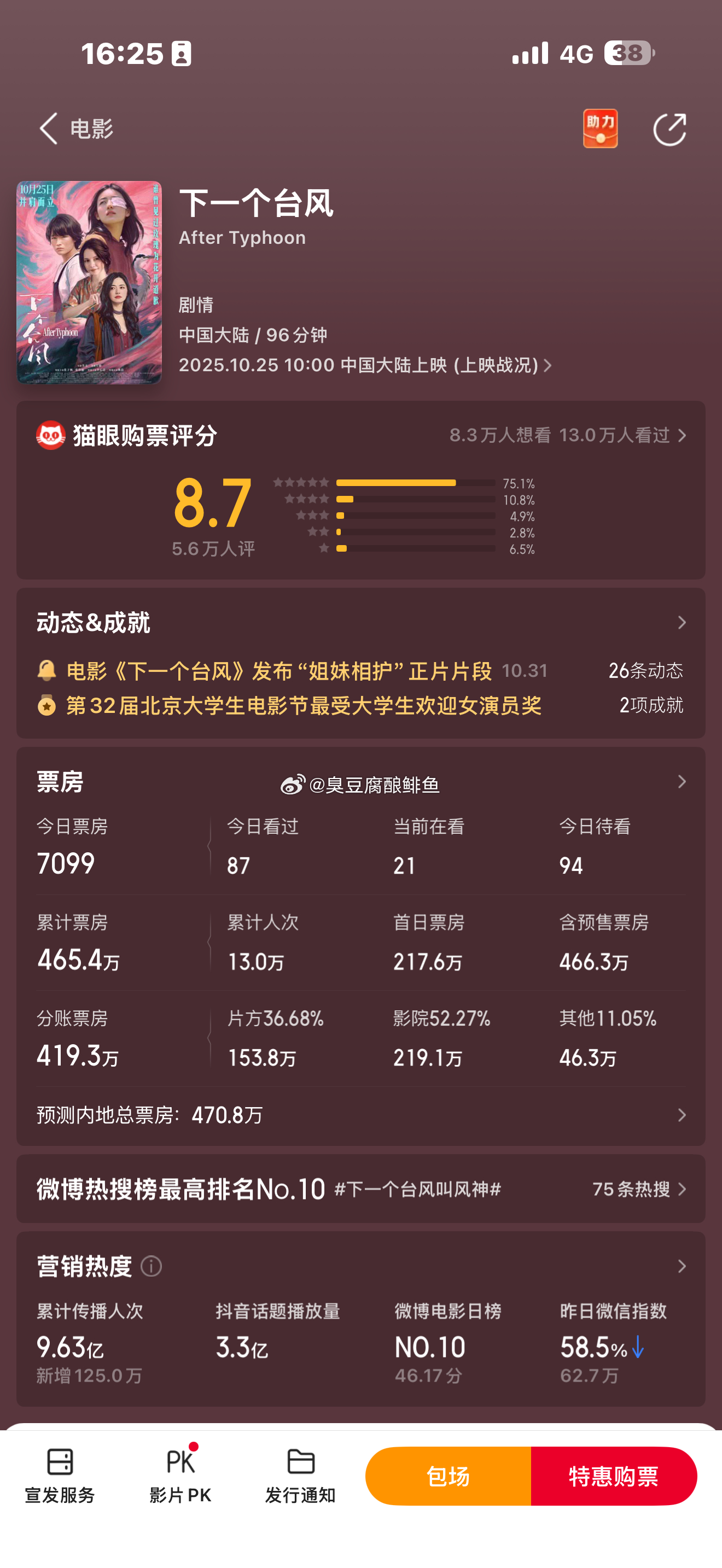 热烈祝贺下一个台风票房超越逐梦演艺圈2倍。一个233万,一个470万(还在稳步上升中)一个没有明星,一个很多明星。差异2倍也说得过去。在这一次电影中,导演说中国女性想夜跑,但社会接不住。最终有13万人支持了这部电影,也让我们祝贺《下一个台风》。斩获接近500万票房,可喜可贺,
