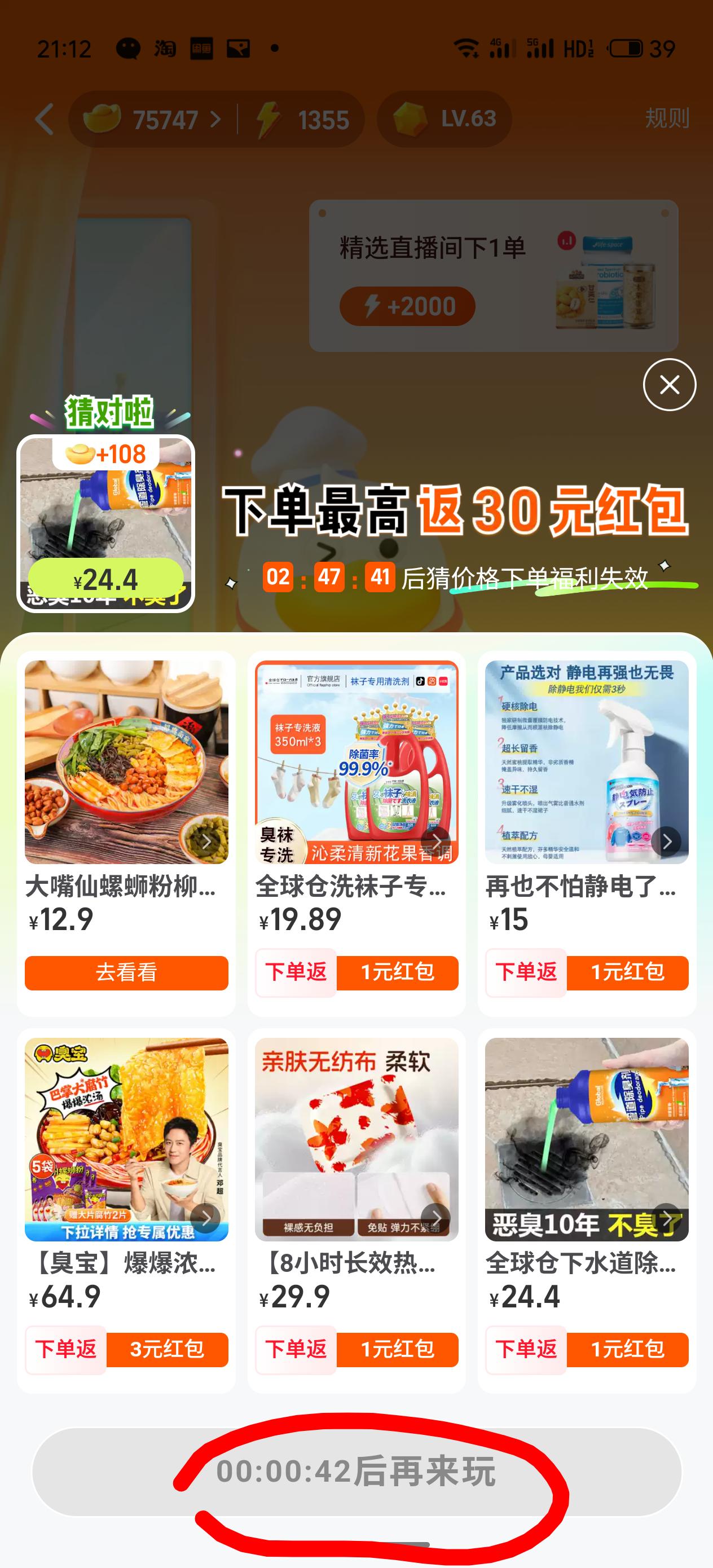 今天点淘收1.2 没用全力,尽量少花时间 走路 打工赚元宝 家园兑换 每天0.2元 猜价格 一分钟可以玩一次 记得故意错一次 第二次勾选正确的价格可以得到100+108元宝 两次签到 晚上八点前一次 八点后一次