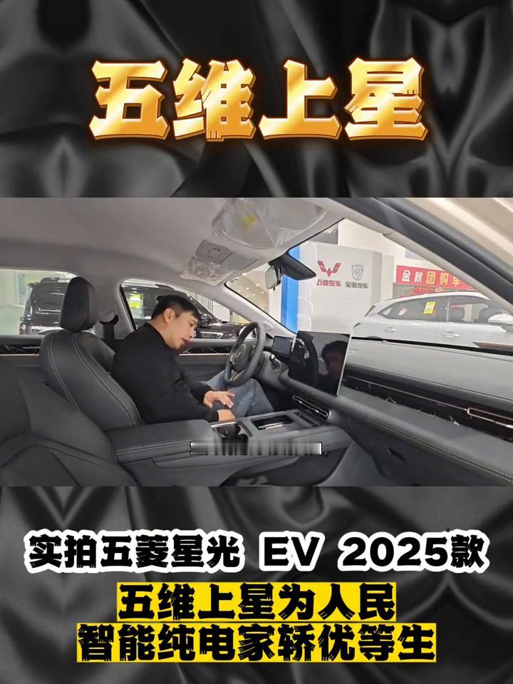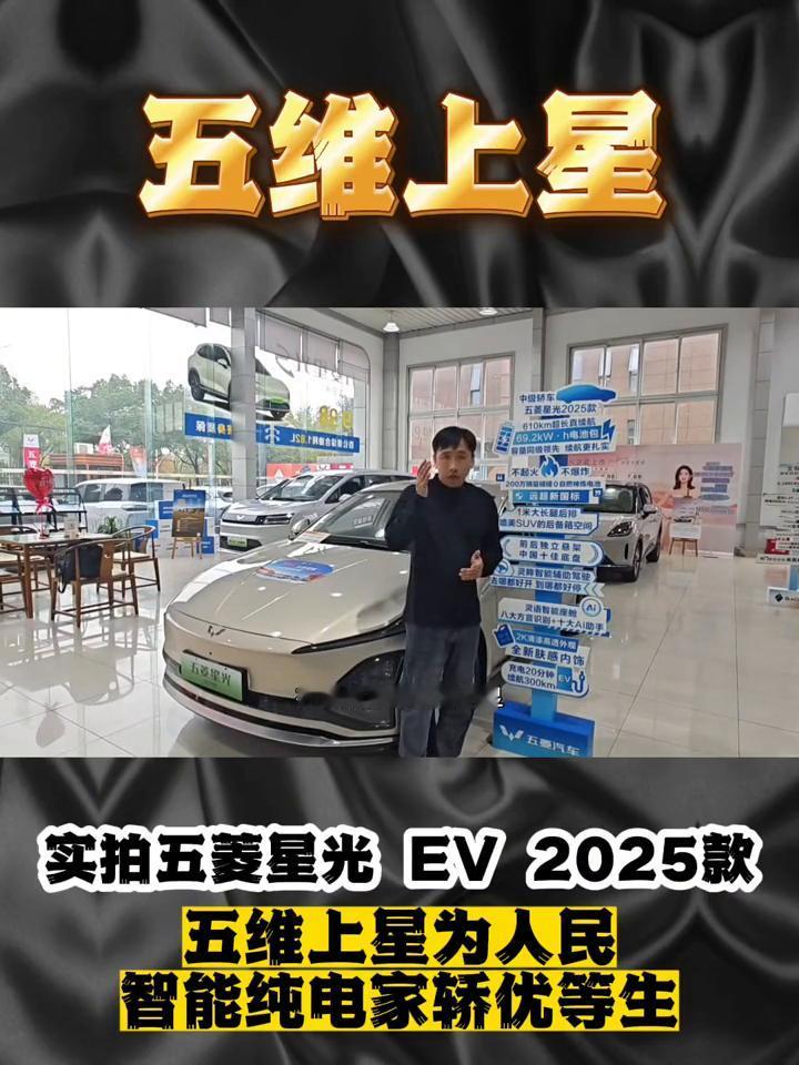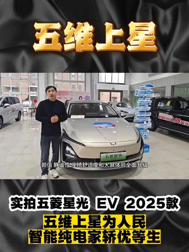 五维上星实拍五菱星光EV2025款。 哈喽大家好,今天来探店五菱星光EV的2025款,也就是纯电版。听说这次是全面升星,升级力度到底给不给力?随着镜头来一探究竟。 ·先看颜值,低趴的轿跑姿态是不是很帅气?我特别喜欢的是星彩灯组,贯穿式的设计,点亮后很有未来感。这次还用上了国际大厂巴斯夫的2K高清清漆,光泽度就跟镜面一样,而且更厚、更耐磨。 车长4835毫米,轴距2800毫米,在流线型的车身设计下有着宽敞的空间。坐进车内,内饰是全新的双色设计,手能够触摸到的地方很多都是亲肤的软质材质,手感非常棒。同级最大的15.6英寸大屏,边框超窄,清晰度很高,看导航、看电影都非常爽。 这里有一个特别贴心的设计,带风冷的双50瓦无线快充,再也不用担心手机充电发烫了。下面还是双层设计,空间利用的明明白白。环抱式的座椅包裹性很好,重点是现在主副驾都是电动调节了,而且前排标配了通风和加热,夏天不怕烫,冬天不怕凉。更惊喜的是后排坐垫居然能够加热,真的是太贴心的设计了。 后排的空间相当越级,差不多有三拳,头上有一拳,能够媲美MPV了。腿部空间非常的充裕,地台几乎是纯平的,而且优化了后排靠背角度和坐垫的长度,长途乘坐会更舒适。后备箱有600升的容积,还带隐藏式的储物格,日常家用绝对够装了,设计也非常的规整。 ·智能方面引入了灵眸AI的中枢智能体,拥有秒懂你的十大AI助手,还有丰富的应用和手机互联。智驾方面搭载的是灵眸智能辅助驾驶-标准版,智能驾驶-泊车等等方面在同级车都优势明显。 ·接下来说说重头戏安全,五菱这次把神炼电池的安全标准拉满了,他们做了行业首例五面多针测试,甚至做了极限的枪击测试,电池都能做到不起火、不爆炸,安全感给的很足。 在车身结构上高强度钢占比超过了76%,关键部位用的都是1500兆帕的热成型钢,相当于飞机起落架的强度。再加上环抱式的6安全气囊,保护是全方位的。 划重点,五菱星光EV2025款颜值静谧性、座椅舒适度和大屏体验全面升级,安全更是它的王牌。续航拥有510公里和610公里两个版本,而且都是实打实的真续航,能够有效的解决续航焦虑。 最后说一说价格,10.98万元起,置换一口价9.98万元起,这样一台在颜值、舒适、安全和智能上都上来新的智能传递家教,让你心动了吗?