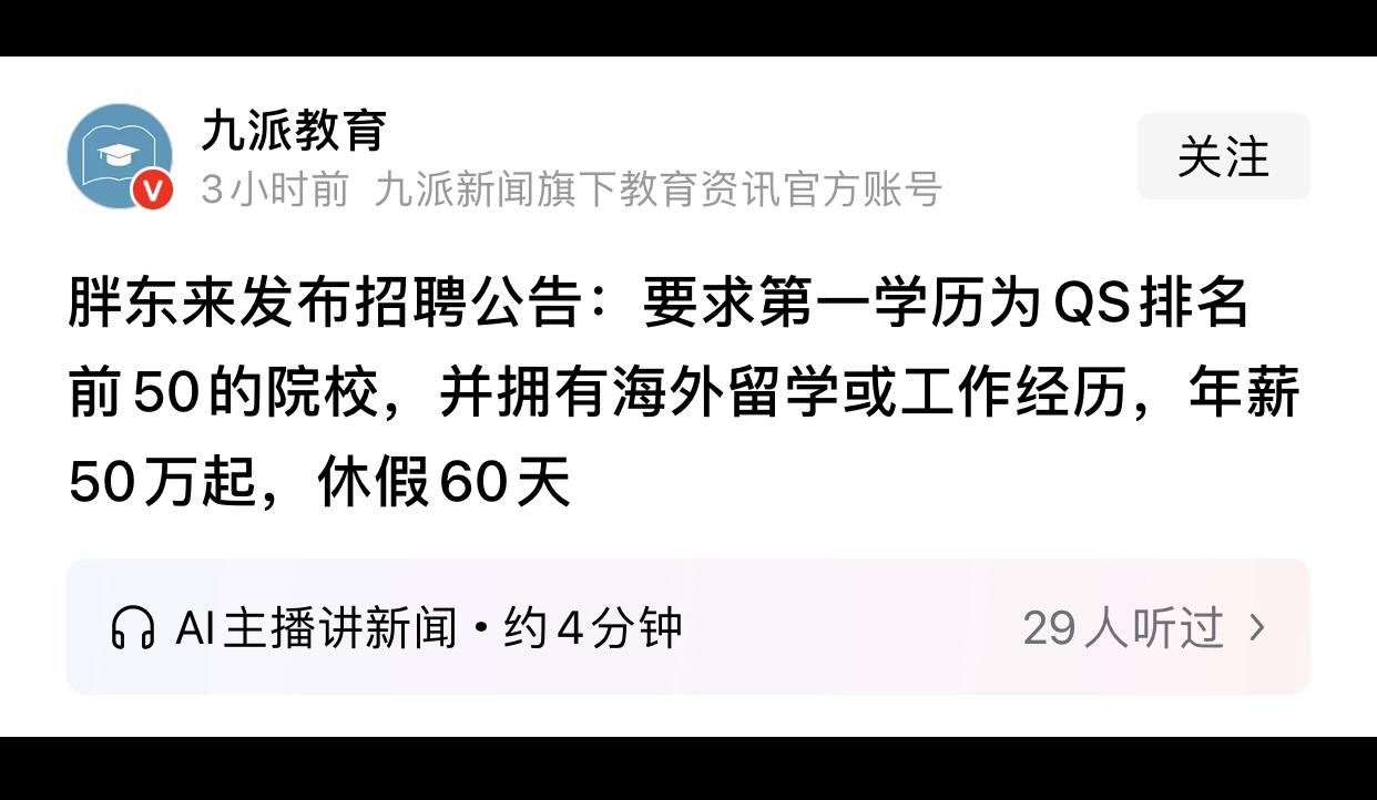 胖东来最新招聘炸热搜:QS排名前50学历+海外经历,50万年薪竟是翻译岗! 网上主要争议在于招聘中学历要求QS排名前50是符合时宜,还是不合时宜? 目前国内多所大学已退出QS世界大学排名! 早在2021年,中国人民大学和兰州大学就率先停止向QS等机构提供数据以退出排名,此后中南大学、吉林大学等高校也纷纷跟进。2025年9月,南京大学官宣全面退出所有国际排名,明确表示不再向包括QS在内的任何国际排名机构提供数据、支付参评费。截至到今年10月,国内已有10所重点高校退出QS等国际排名。 退出原因主要有四项,比如学术声誉权重过高,看重国际学生比例,参评需投入高额费用,存在数据安全风险。 胖东来 胖东来管理模式 胖东来薪酬 胖东来管理之道 上海胖东来 胖东来工作法 胖东来商标争议