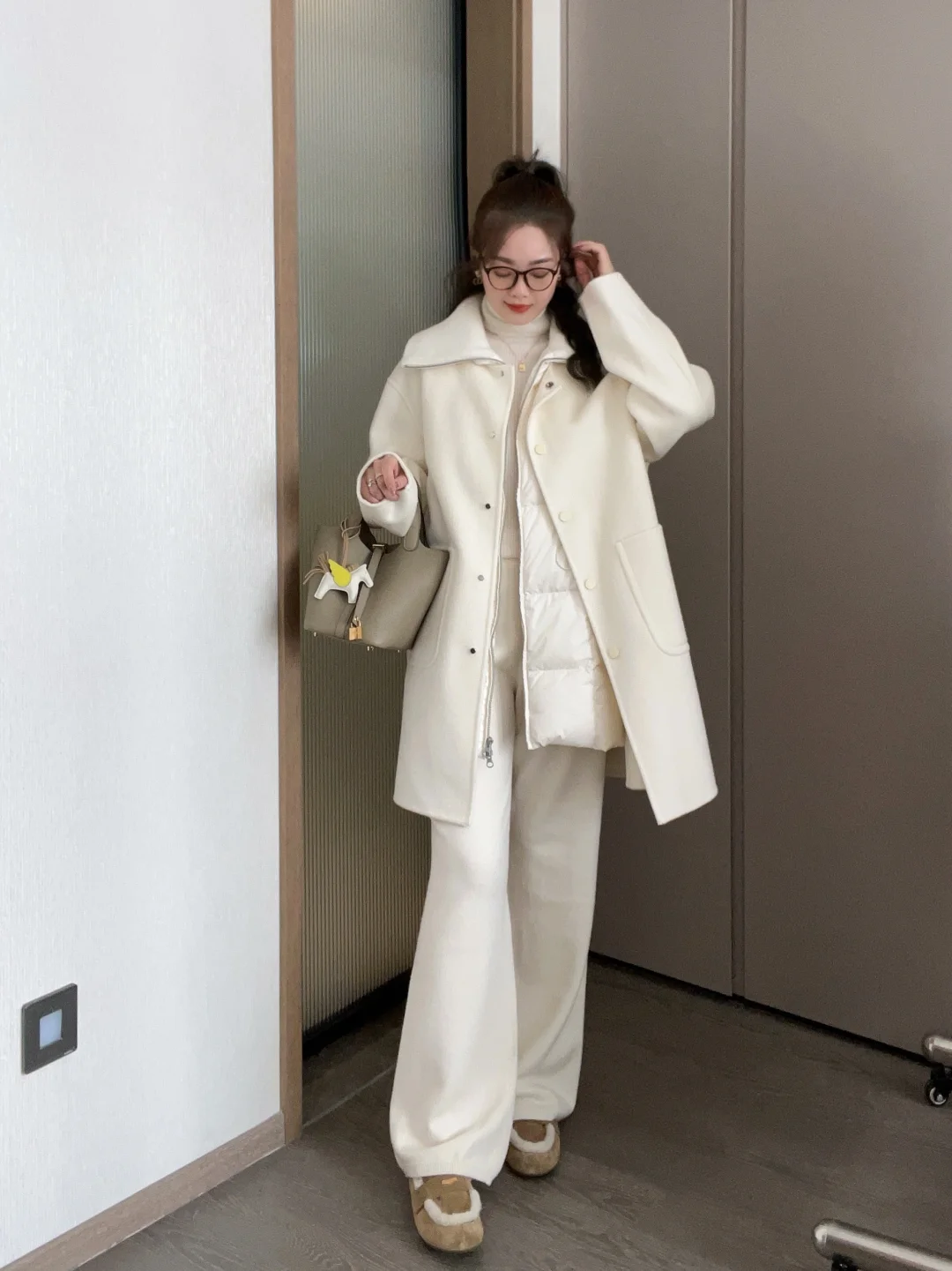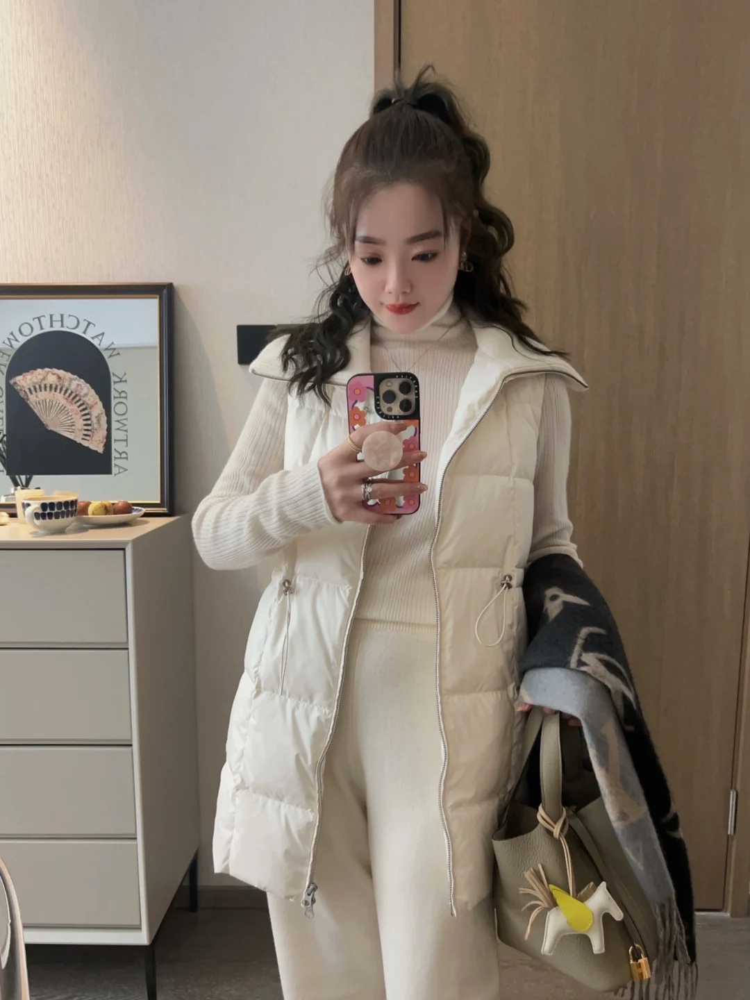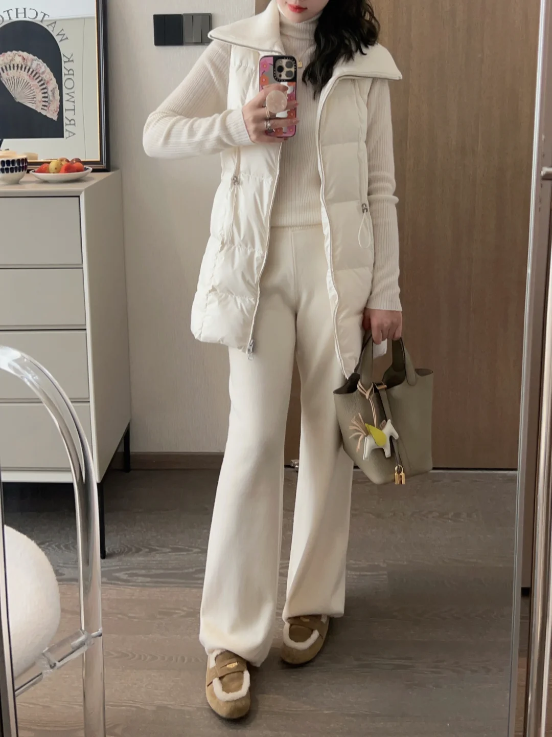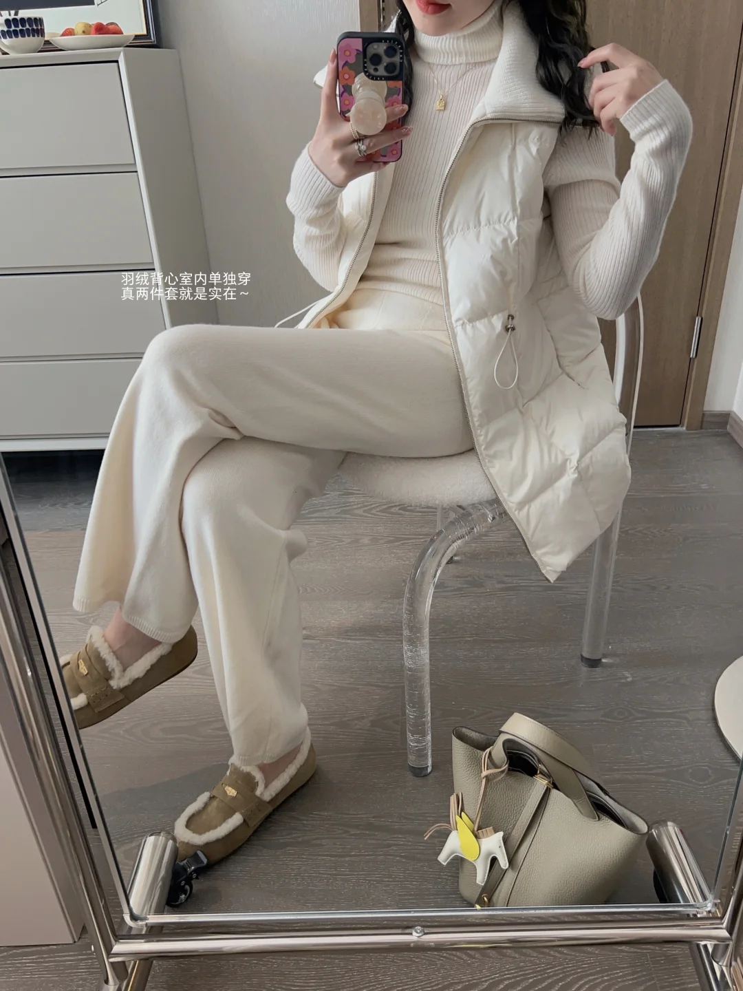 谁懂啊冬天穿白色系真的很公举诶!👸🏻❄️ 不想紧绷绷穿牛仔裤的时候就穿糯糯裤叭,真的很慵懒很休闲超级舒服~ 今天好多人问到了羽绒背心!告诉宝宝们这个是真两件套!不是jia两件!所以仿佛一次性拿到了两件衣服的快乐你们懂了吧!