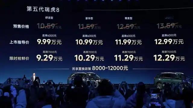 懂车之道讯懂车之道快讯,全新奇瑞瑞虎8正式发布上市,官方指导价为9.99万-12.99万元起,限时售价为9.29万-12.29万元。提供虎款和豹款双前脸设计,内饰提供纵置中控屏和横置悬浮式中控屏两种风格,动力方面,全系搭载1.6T发动机匹配7速湿式双离合变速箱。