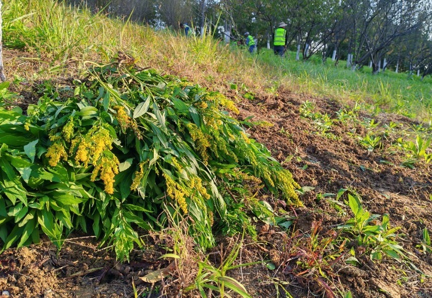 【】11月11日,大皖新闻记者在合肥现场见证工作人员对“加拿大一枝黄花”进行清理。相关专家表示,一株成熟的“加拿大一枝黄花”可产生数万颗种子,遇合适环境便生根发芽。11月11日下午,在合肥市宿松路高架桥下东侧,合肥经开区海恒临湖社区绿化养护项目负责人程雅云正带着工人进行清理。现场,工人苏礼跃手持铁锹,熟练地将一簇“加拿大一枝黄花”连根挖出。经过多年实践,他已能迅速从草丛中辨识出这种植物。大皖新闻记者在现场看到,工人们两两配合:一人挖出植株,另一人清理根部泥土。挖出的植株将被集中运走并粉碎处理。“这东西生命力很强,沾土就可能复活。”一位工人说。合肥经开区城管局市容环卫处副处长刘达青介绍,上个月全区出动近300人进行大规模清除。而在程雅云展示的手机照片中,记者看到成片的“加拿大一枝黄花”,长得很高。合肥市林业保护中心高级工程师周安云指出,目前全市防治工作涉及林业、园林、水务、生态环境等多个部门。“加拿大一枝黄花”防治问题存在哪些难点和痛点呢?11月11日,大皖新闻记者联系上合肥市农业经济技术服务管理总站农业生态环境站站长荚力。荚力解释说,一株“加拿大一枝黄花”成熟后可产生约数万颗种子,像蒲公英一样随风扩散,根系也能无性繁殖,因此极难根除。他表示,通过生态位替代可有效治理,例如在清除后土地上种植玉米或者其他农作物,即可有效抑制其再生。对于完成清除的土地,还需要连续监控,以防止其“死灰复燃”。相关专家介绍,目前正处的秋季是“加拿大一枝黄花”防控关键期,必须在种子成熟前清除植株,才能有效阻断其传播链。他提醒说,“加拿大一枝黄花”成熟期前后差异较大, “对于种子成熟的植株,处理的时候要特别小心,以免造成种子飞散。”近年来,合肥市防治“加拿大一枝黄花”力度较大。种种迹象表明,对于这种植物的防治是一场持久战。相关部门呼吁,广大市民也可以积极参与“加拿大一枝黄花”防治工作,如在户外、绿地或田间发现“加拿大一枝黄花”,可以在确保安全的前提下,主动动手清除,一起遏制“加拿大一枝黄花”的蔓延势头,共同守护合肥的生态安全。()