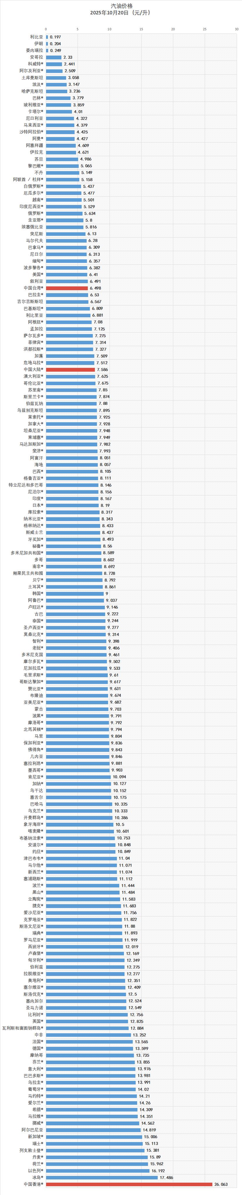 世界各国和地区油价