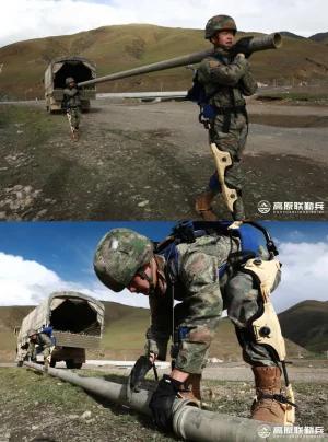 解放军后勤部队使用机械骨骼在中印边境附近建设石油供应管道