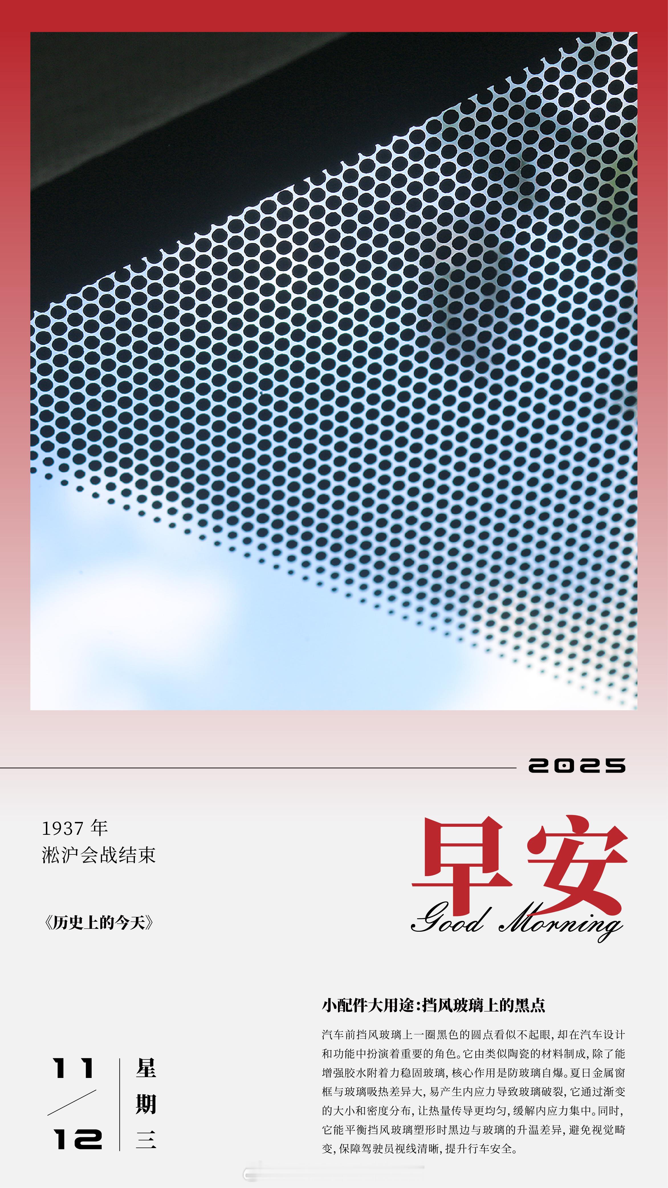 汽车前挡风玻璃上一圈黑色的圆点看似不起眼,却在汽车设计和功能中扮演着重要的角色。它由类似陶瓷的材料制成,除了能增强胶水附着力稳固玻璃,核心作用是防玻璃自爆。夏日金属窗框与玻璃吸热差异大,易产生内应力导致玻璃破裂,它通过渐变的大小和密度分布,让热量传导更均匀,缓解内应力集中。同时,它能平衡挡风玻璃塑形时黑边与玻璃的升温差异,避免视觉畸变,保障驾驶员视线清晰,提升行车安全。