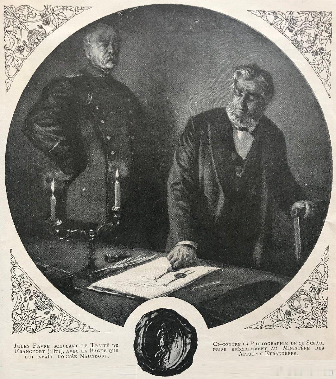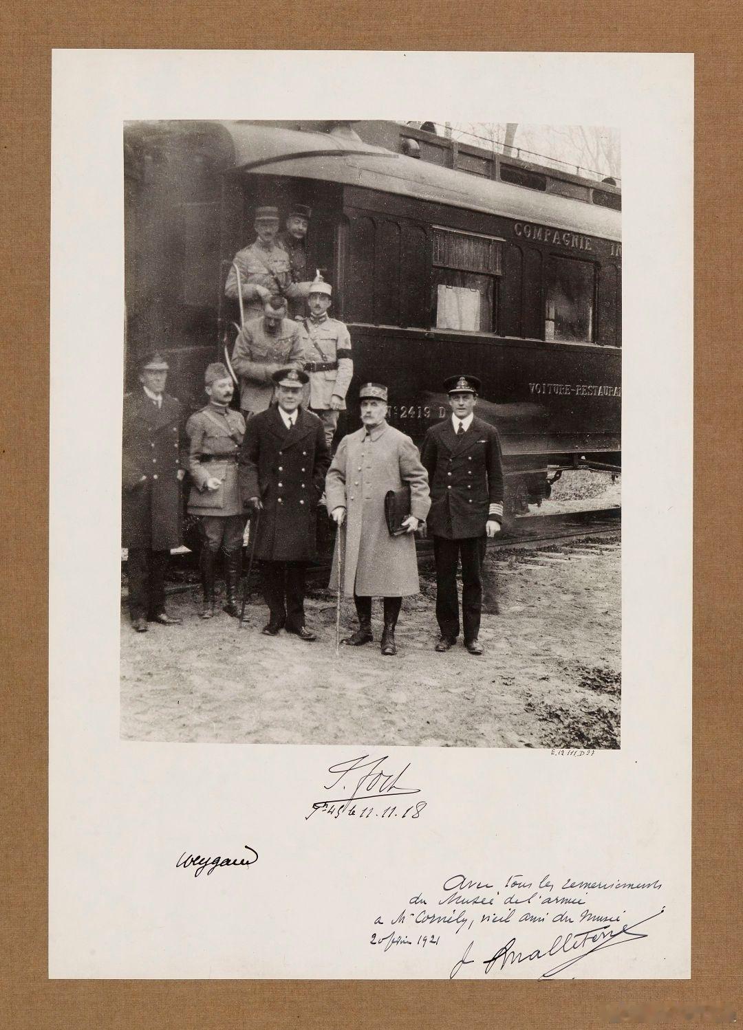 1918年11月11日,在法国巴黎北部贡比涅附近森林的东方快车第2419号车厢内,法兰西第三共和国元帅福煦(图3)和德意志帝国看守政府代表马蒂亚斯·埃茨贝格尔(图4)签署了停战协定,即贡比涅停战协定(法国人称Armistice de 1918,德国称Waffenstillstand von Compiègne 1918),并在当天上午11点正式生效,一战画上了句号。后世观之,停战协定的条款对德国极为苛刻,然而此时德国国内革命爆发,军队无心再战,德皇已经退位流亡,埃茨贝格尔虽然心有不甘,但也只能接受。唯有在签字前向福煦元帅抗议不公,而福煦则原封不动地引用了1871年5月10日签署停止普法战争的法兰克福协议时,法国代表向德国抗议时俾斯麦所说的名言:“战争就是战争。”(图5)面对凡尔赛和约,福煦元帅仍觉得对德国削弱不够,担心其东山再起,甚至预言这只是二十年的停战。而埃茨贝格尔战后虽曾担任过德国财政部长,却被视为叛徒遭千夫所指,1921年遭到极端恐怖组织“领事”的刺杀。1940年6月22日,法国在二战中战败投降,签署停战协议时,希特勒下令将1918年的停战车厢从博物馆中拖出,摆放在同样位置进行两国谈判(图6),宣告“复仇”。二战末期,这节车厢(2419D)毁于战火。如今在法国展出的,是该车厢的姊妹款(2439D)。历史告诉我们,大国之间战争的停战协议,除了少数特殊情况,倘若条款过于不公,则和平必不长久,因为遭受屈辱的大国容易滋生复仇主义,如普法战争后的法兰克福和约,如凡尔赛和约;相反,如条款相对温和,在实现本方核心利益的前提下又不把对方逼到墙角,则容易实现长久和平,如普奥战争后的布拉格和约,如拿破仑战争后的维也纳和约。但人类往往不会吸取历史经验教训。