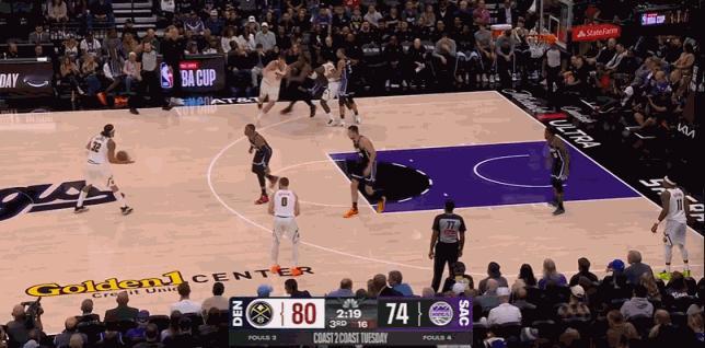 NBA常规赛掘金客场背靠背挑战快船,约基奇表现开挂,他全场出战34分钟,投篮23