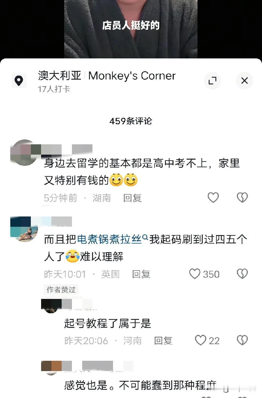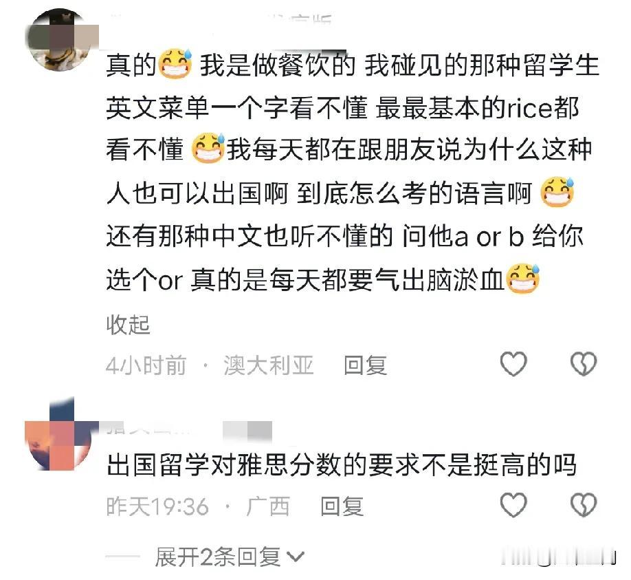 现在的留学生水到留学生自己都嫌弃,不仅连英语都不会,连生活能力都非常底下,把电饭锅放在煤气炉上烧,这些人到底是怎么活到这么大的,难怪都说考不上国内大学的,才去国外留学,以前还觉得有点夸张,看评论区这么多留学生对留学生的吐槽,才知道这是真的,真的太水了,就是花钱去买学历,国外某些大学就是专门开来赚这些人的钱的!