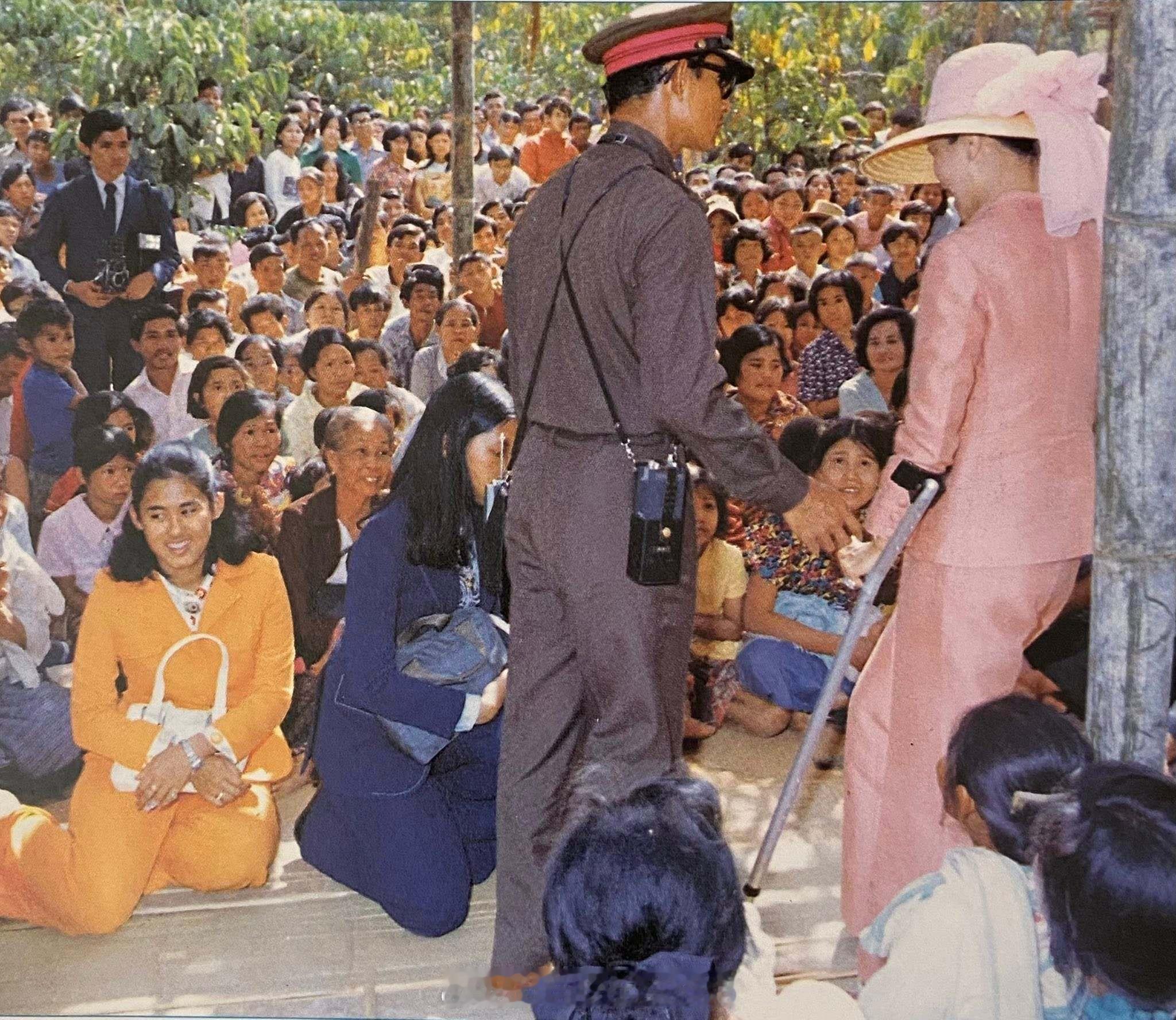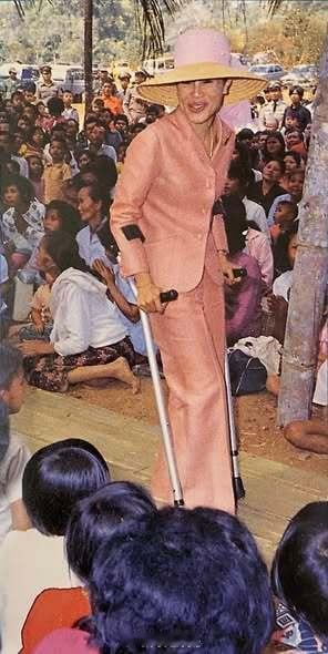 老照片:带伤上阵的红唇姐。1974年,红唇姐意外受伤,但是当时她已经定好和九世一起走基层,许多底层群众都渴望着见到王后,那是七十年代,民众出行并不方便,也没有今天发达的讯息可浏览。红唇姐不想让民众失望,于是拄着拐杖带伤出行,看到她的人民都非常高兴,有一说一红唇姐在履行王后职责方面还是很有责任心的