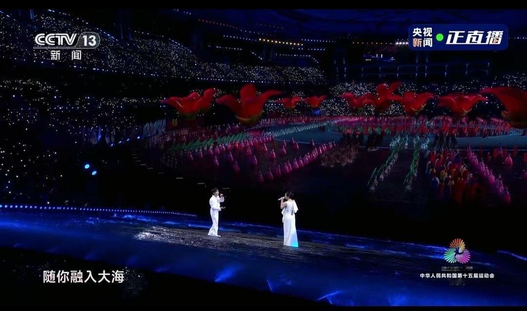 全运会开幕式上,周深和小单的表演被热议,但真不是他们唱功不行! 他俩在《大鱼海棠》里的天籁之音有目共睹,这次踩在流水台阶上唱《天海一心》,空灵又细腻,可这歌和运动会的“燃点”不太搭。你看刘德华一开口《中国人》,全场瞬间沸腾,那才叫自带气场!而《天海一心》太安静,少了点爆发力,在运动场上听着就有点“软”。 所以啊,别怪周深和小单,换张韶涵来,估计也难把这首歌唱出运动会那种热血沸腾的感觉。他们已经很努力了,选歌才是关键!