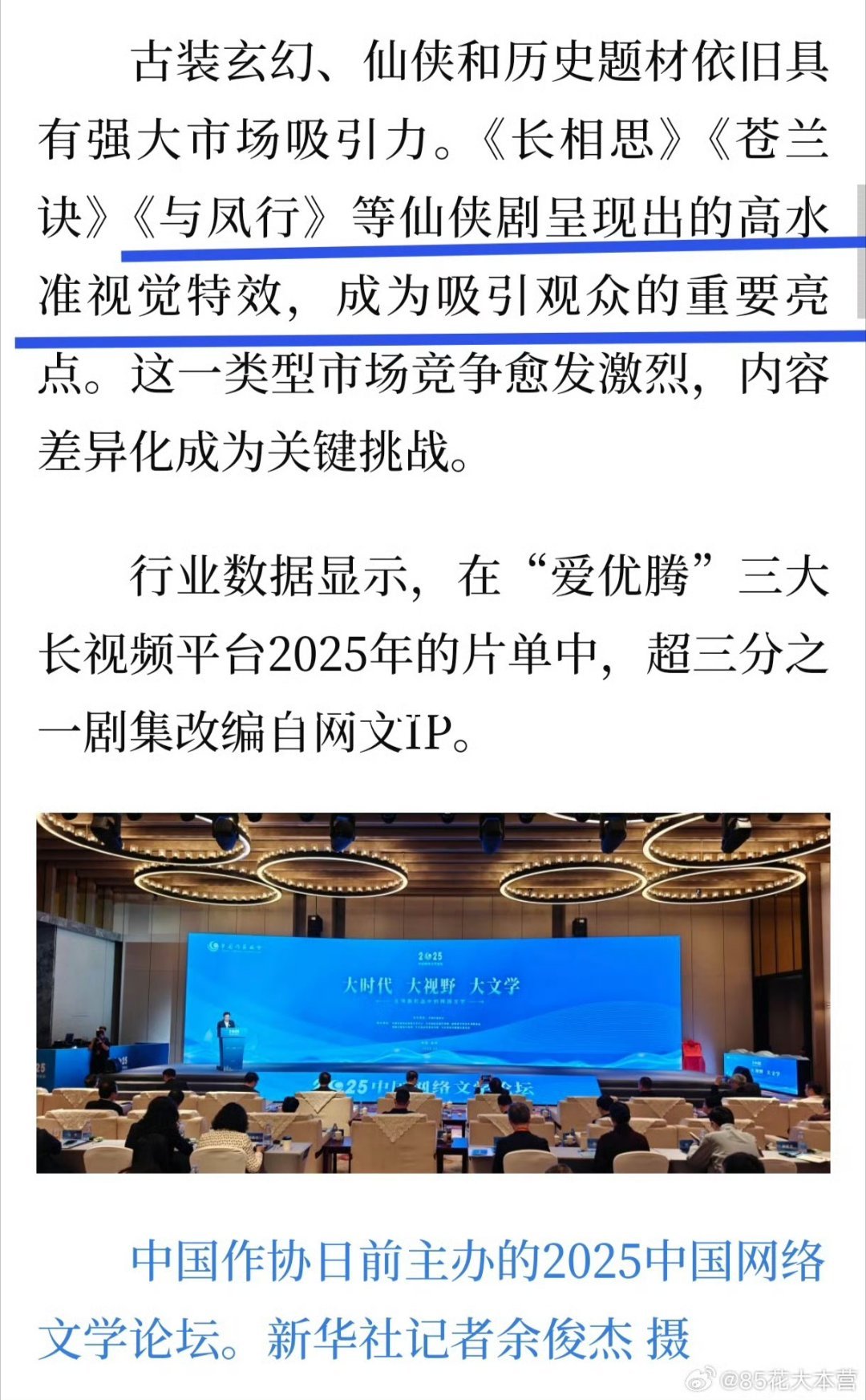 新华社——文化新观察《文学想象照亮荧屏:网文影视化改编加速》文中两次提到《与凤行》——《与凤行》等仙侠剧呈现出的高水准视觉特效,成为吸引观众的重要亮点。《与凤行》在全球180多个国家与地区播出赵丽颖《与凤行》好牛!!
