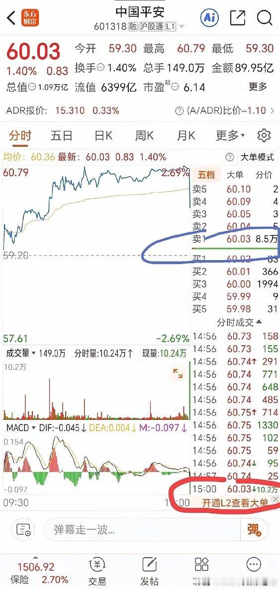 简直太嚣张了!中国平安在尾盘竞价阶段,竟遭某主力以11亿多元砸盘,从尾盘分时成交情况来看,成交了6亿多元,还压着8.5万手。今天平安的强势表现,被这大空头瞬间打压下去一半。在当前这个时间点,正值上证4000点指数保卫战的关键心理关口,这种明目张胆的卖出打压行径,实在是嚣张至极!