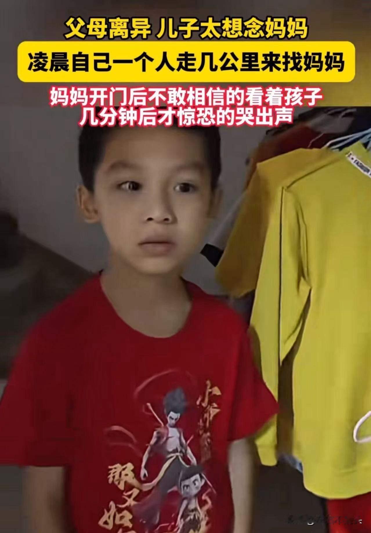 广东,父母离异,儿子因为太想念妈妈,凌晨一个人从爸爸家走几公里来找妈妈!当妈妈看到儿子站在门口,一脸不敢相信,随后惊恐哭出声!妈妈:“凌晨5点多,让这么小的孩子一个人光着脚丫跑出来,不给我孩子的抚养权,又不照顾好孩子,负责任吗?” 广东的凌晨,街道还笼罩在一片朦胧的寂静中,但在一个普通的家庭门口,却上演着一幕令人心碎的场景。一个年幼的男孩,光着脚丫,站在门口,满脸稚嫩却满是坚决。他的眼神中,透着对母亲深深的渴望和不舍——即使天还未亮,他也要跨越几公里的距离,只为见到那个他心中最重要的人。 当妈妈看到站在门口的儿子时,整个人都愣住了。那一瞬间,她几乎不敢相信自己的眼睛:这个小小的身影,孤零零地站在那里,脸上带着些许恐惧和期待。随即,她的心像被针扎一样疼痛,惊恐地哭出声:“你怎么可以这样?凌晨五点多,让这么小的孩子一个人光着脚跑出来!你知道这有多危险吗?你还怎么照顾好他?你是不是不负责任?” 这段母子相见的瞬间,夹杂着太多的无奈与心酸。一个离异家庭的孩子,为了那一份对母亲的渴望,竟然冒着生命危险,用如此执着的行动,表达着自己对家庭的渴望和对母亲的深深依赖。而母亲的愤怒与心碎,也折射出一个家庭、一个社会的复杂现实。 这不仅仅是一场母子相聚,更像是一面镜子,映照出许多家庭中被忽视的情感裂痕。父母的离异,带走了孩子完整的家庭温暖,却无法抹去他们内心深处那份对亲情的渴望。这个小男孩的行为,或许在一些人眼中是“过激”的,但在我看来,却是一种最纯粹、最真实的情感表达。 我们常说,孩子是家庭的未来,是国家的希望,但在现实中,有多少家庭因为各种原因变得支离破碎?又有多少孩子,像这个小男孩一样,用自己的方式,试图弥补那份缺失?他们的行为,是对家庭、对亲情最深刻的呼唤,也是社会最需要关注的角落。 这件事引发了广泛的讨论:家庭教育的缺失,父母责任的缺位,社会对未成年人的保护机制是否到位?更重要的是,我们是否真的理解了这些孩子的心声?他们的行动,或许让我们反思:在追求所谓的“自由”与“独立”的同时,是否也应多一些责任与关爱? 或许,这个凌晨的奔跑,正是孩子心中那份对家庭的渴望最真实的写照。让我们从这个故事中汲取力量,用更多的关爱和责任,守护每一个像他一样渴望温暖的孩子。因为,只有家庭的温暖,才能让他们在风雨中依然坚强前行。 就回家找妈妈 寻亲妈妈