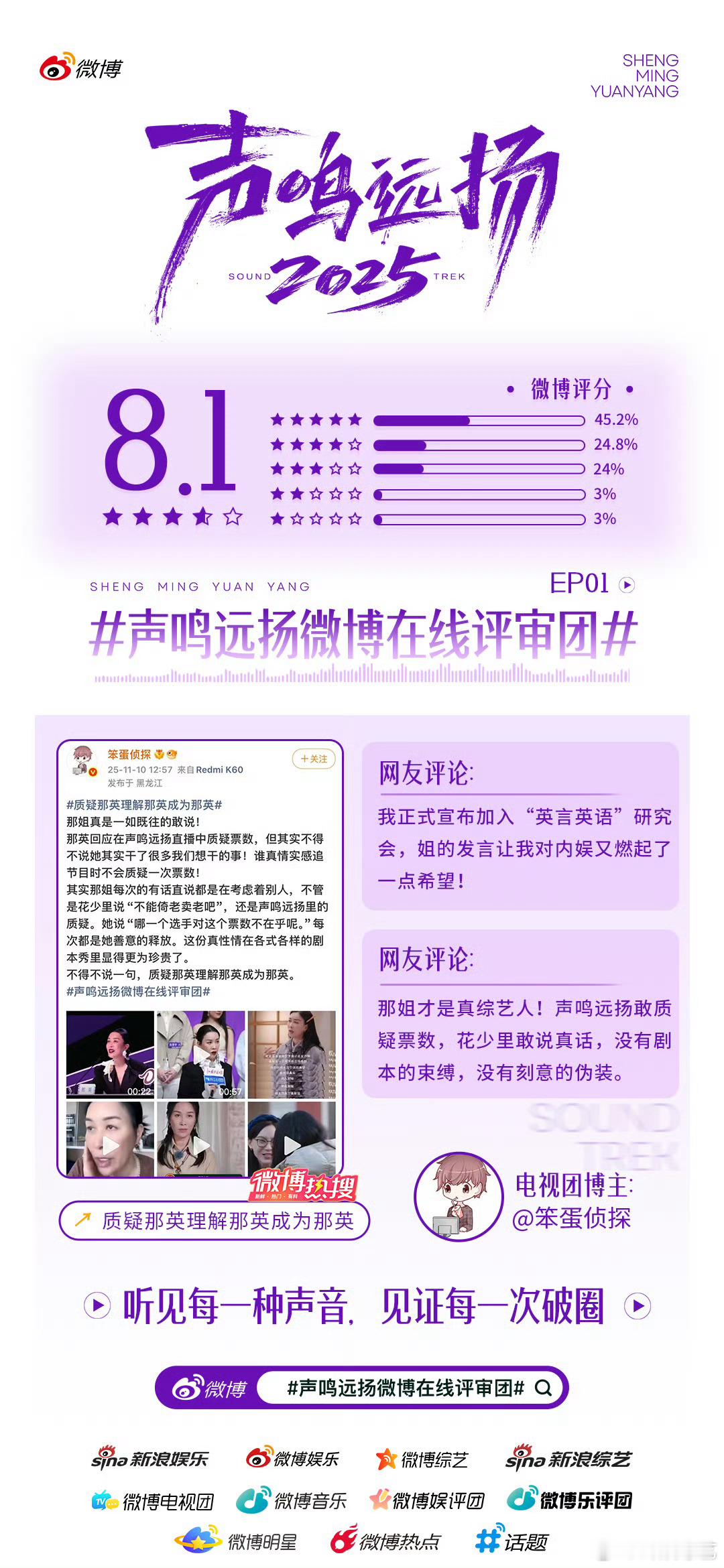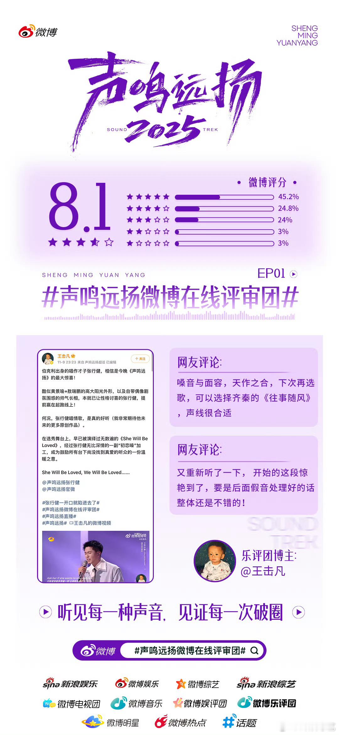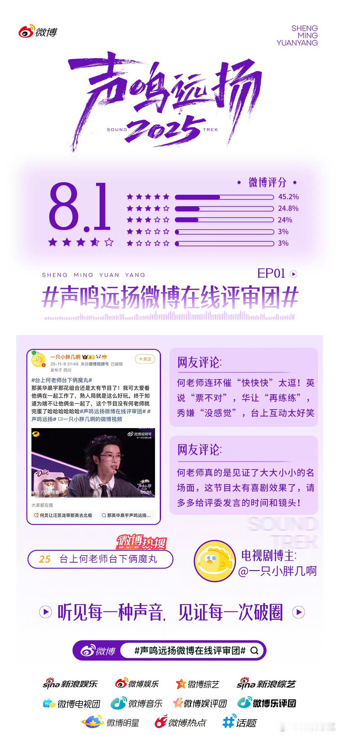 我的评分:《声鸣远扬》首期直播口碑爆棚!微博评分8.1,热梗与质感拉满,值得N刷!