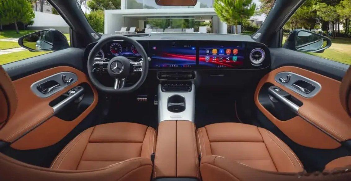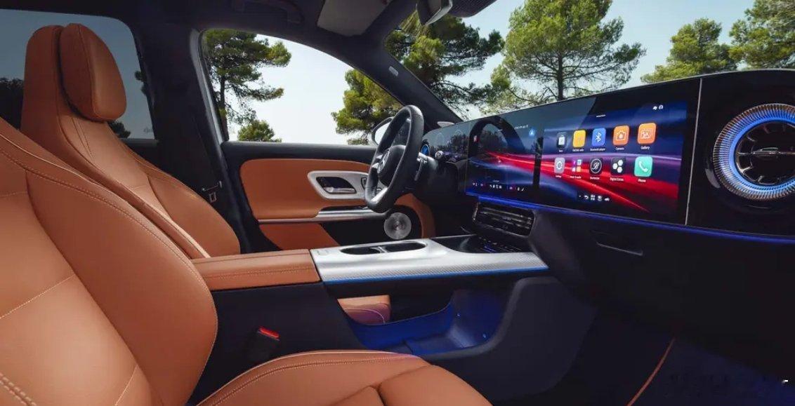 新一代纯电奔驰GLB内饰发布!新车采用七座布局,同时沿用CLA的内饰设计,全景天窗还有“星空顶”可选。计划12月8日全球首发。这个大屏幕和星空顶可太好看了