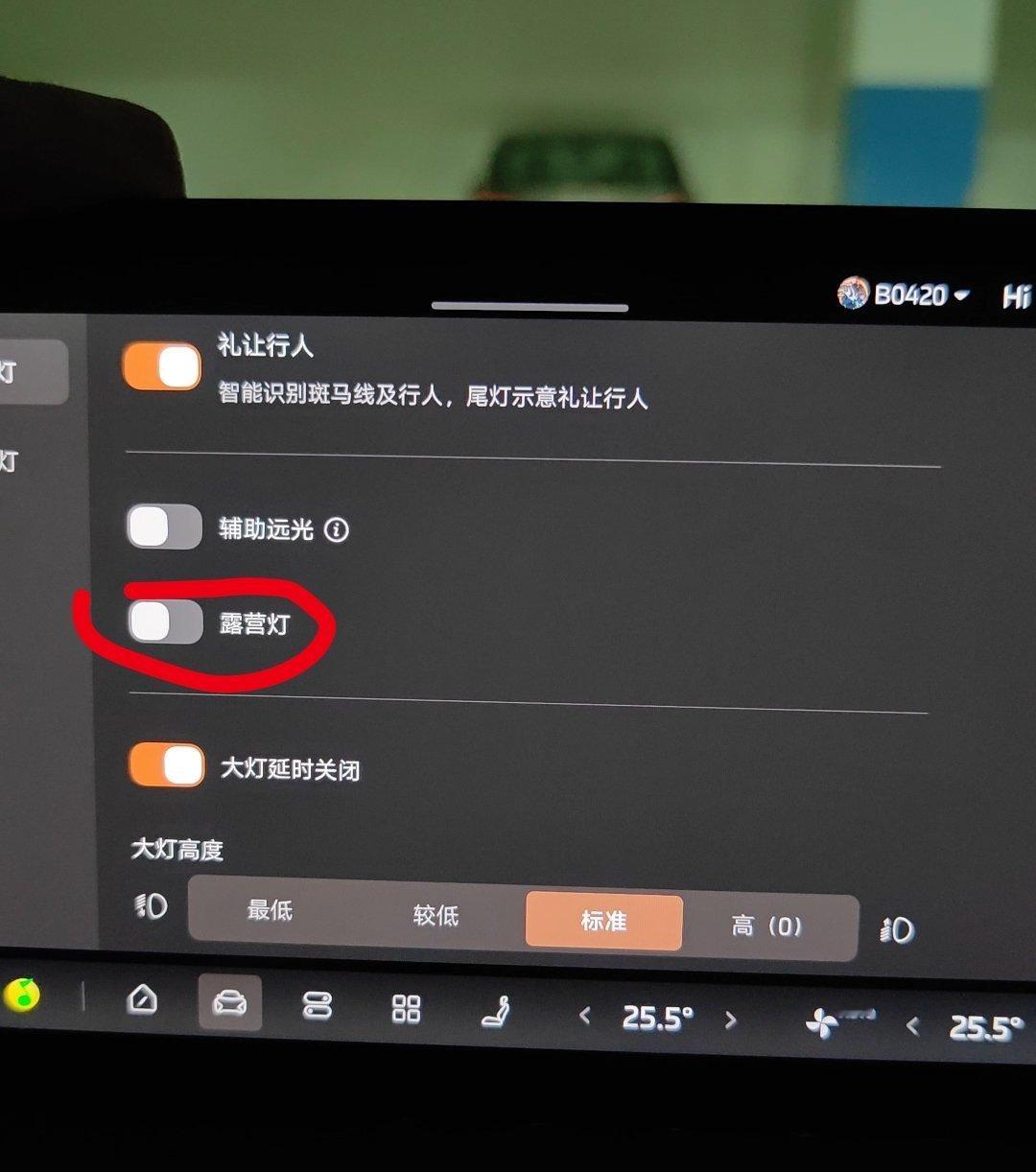 我去,LS9可真有活儿,上面有一排射灯,但是这并不是让你探路用的,系统里叫露营灯,只能停车用。