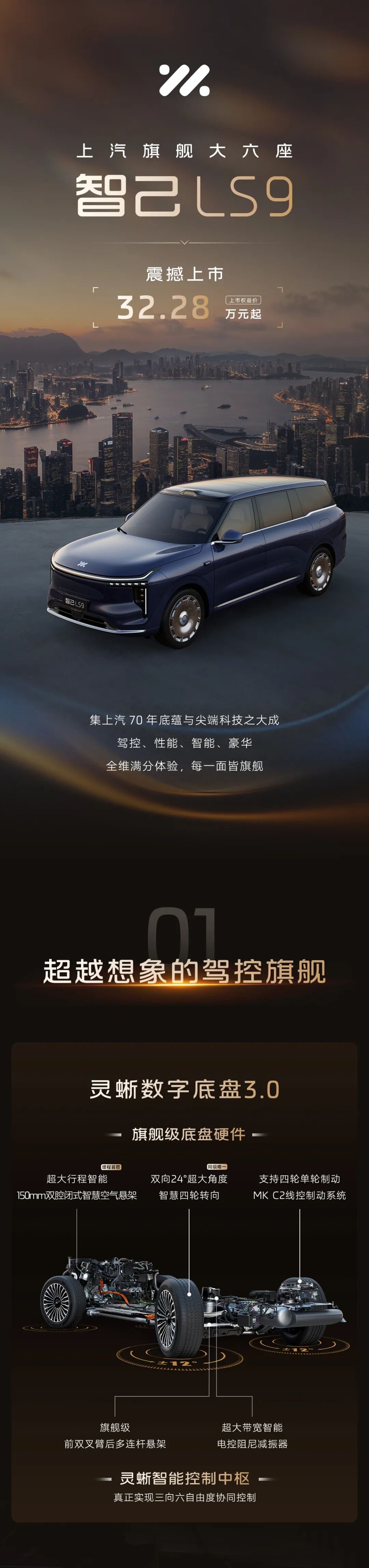 上汽旗舰大六座SUV 智己LS9今天也正式上市了!全系皆Ultra~32.28万元起!这个价格…感觉不仅是现有的大六座旗舰SUV,后面再上市的也都要有压力了