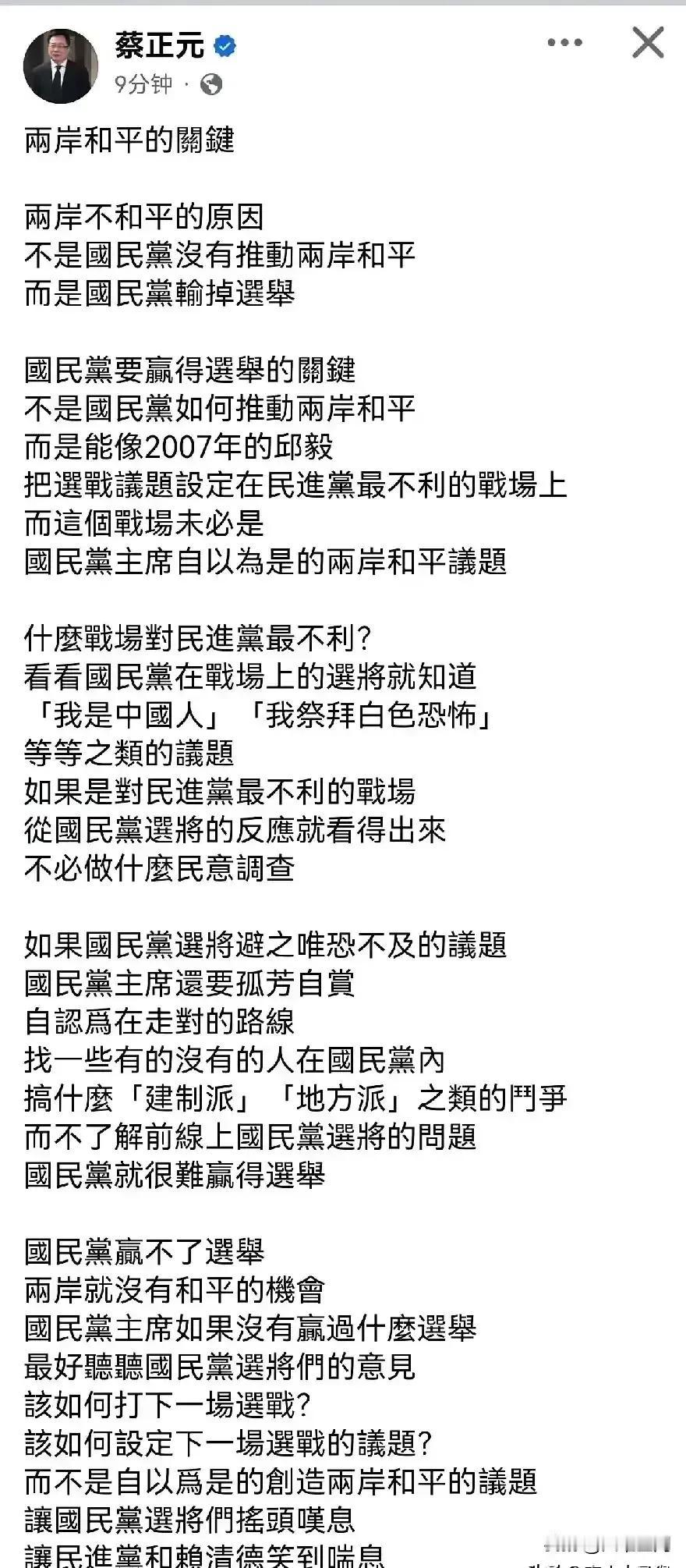 终于明白蔡正元为什么对卢大使的话那么生气了,之前很多人都不明白为什么蔡正元会对一句“叛乱的割据政权”那么生气,从这几天它的这些言论和行为,它就是典型的割据派,所以它才会对“割据政权”这么敏感,平常他的言论都很正常,甚至都是大陆网友爱听的,但是只要你触碰到他的利益,他就炸了,各种本性就暴露出来了!