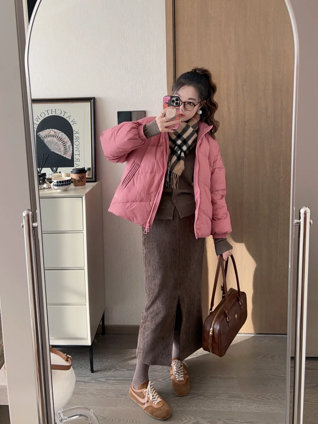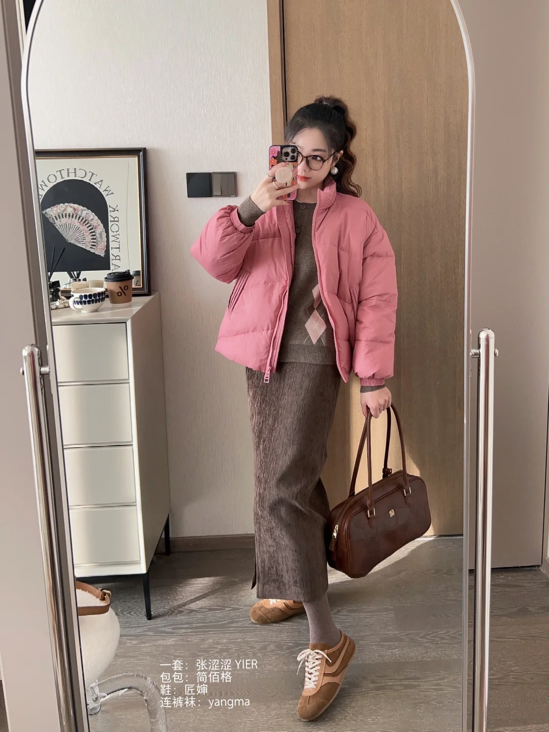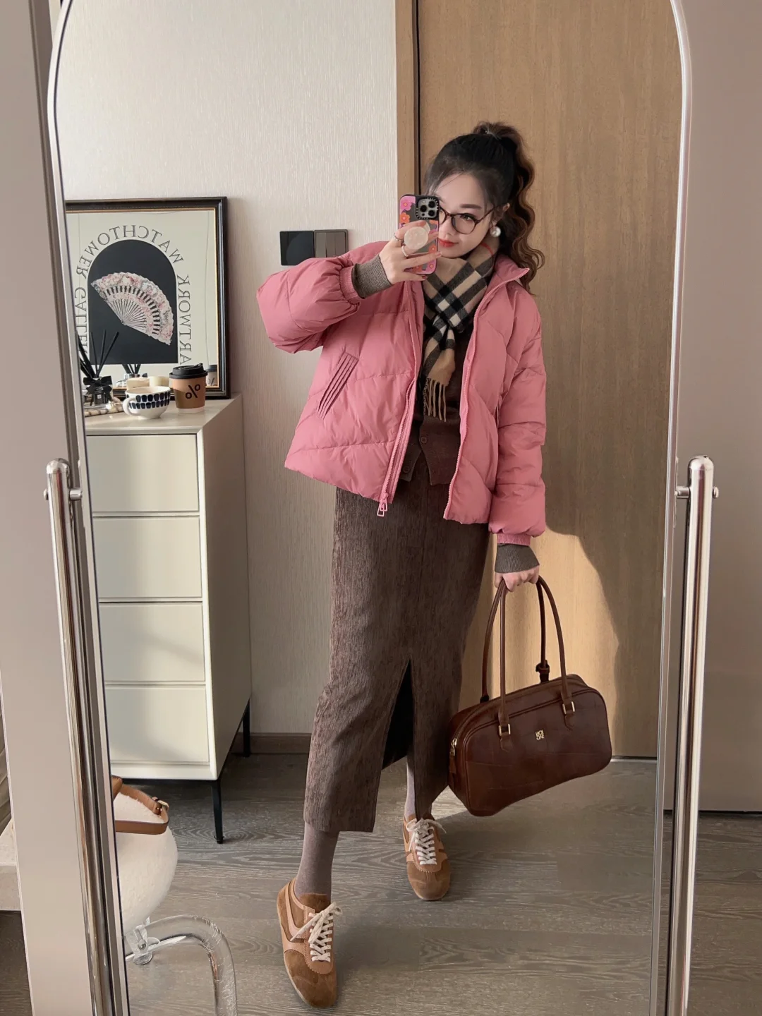 粉棕配yyds!冬日多巴胺满满的!短款羽绒服真的无敌显腿长诶! 冬天穿休闲点实在太舒服了~~