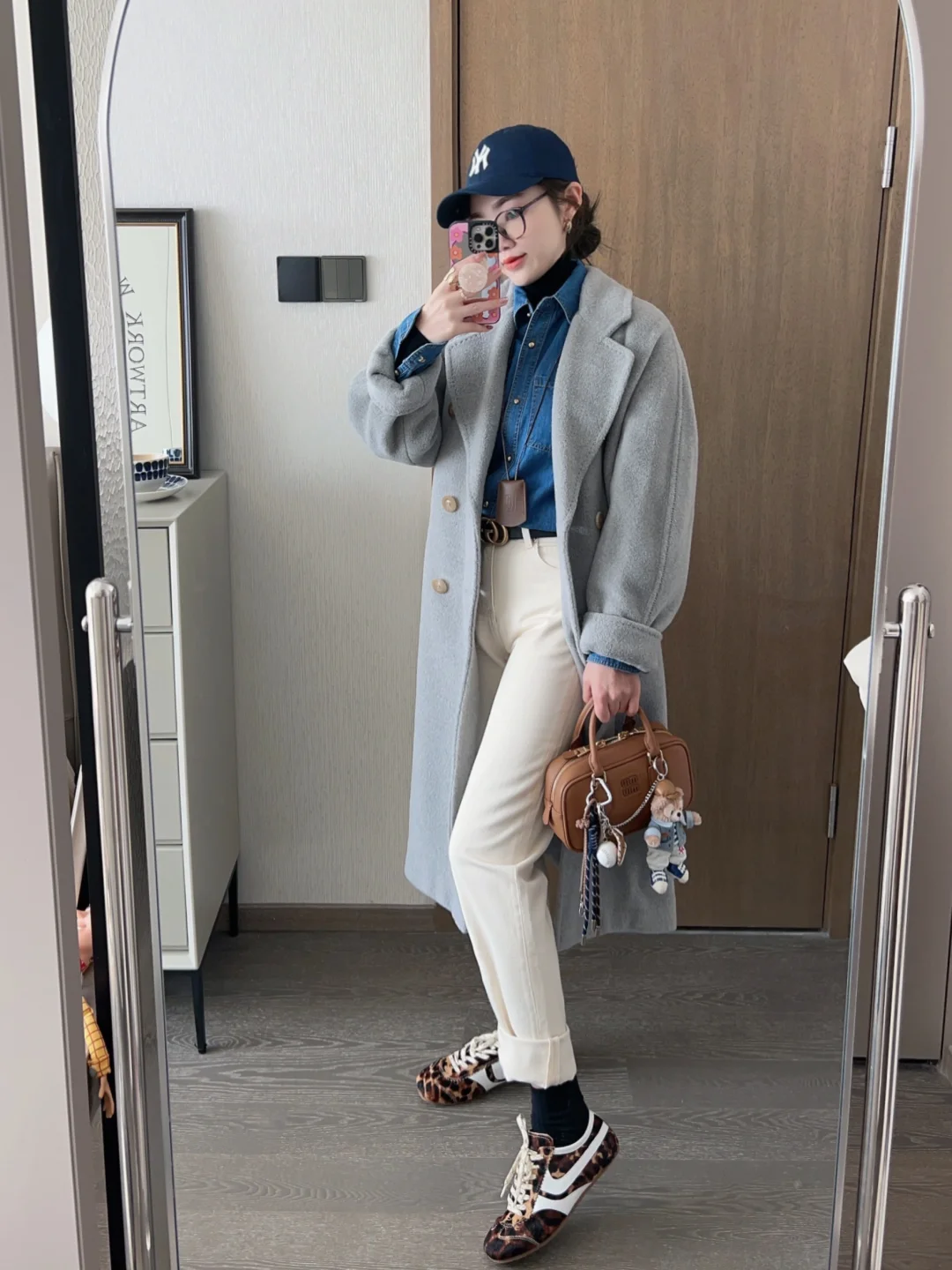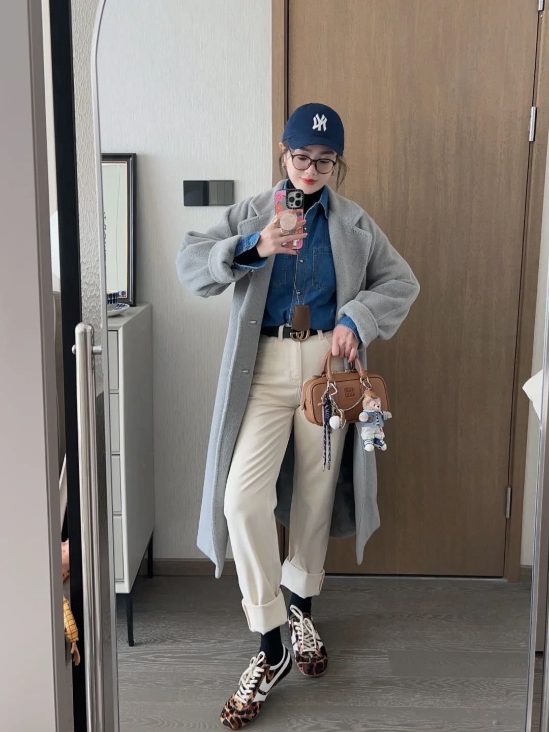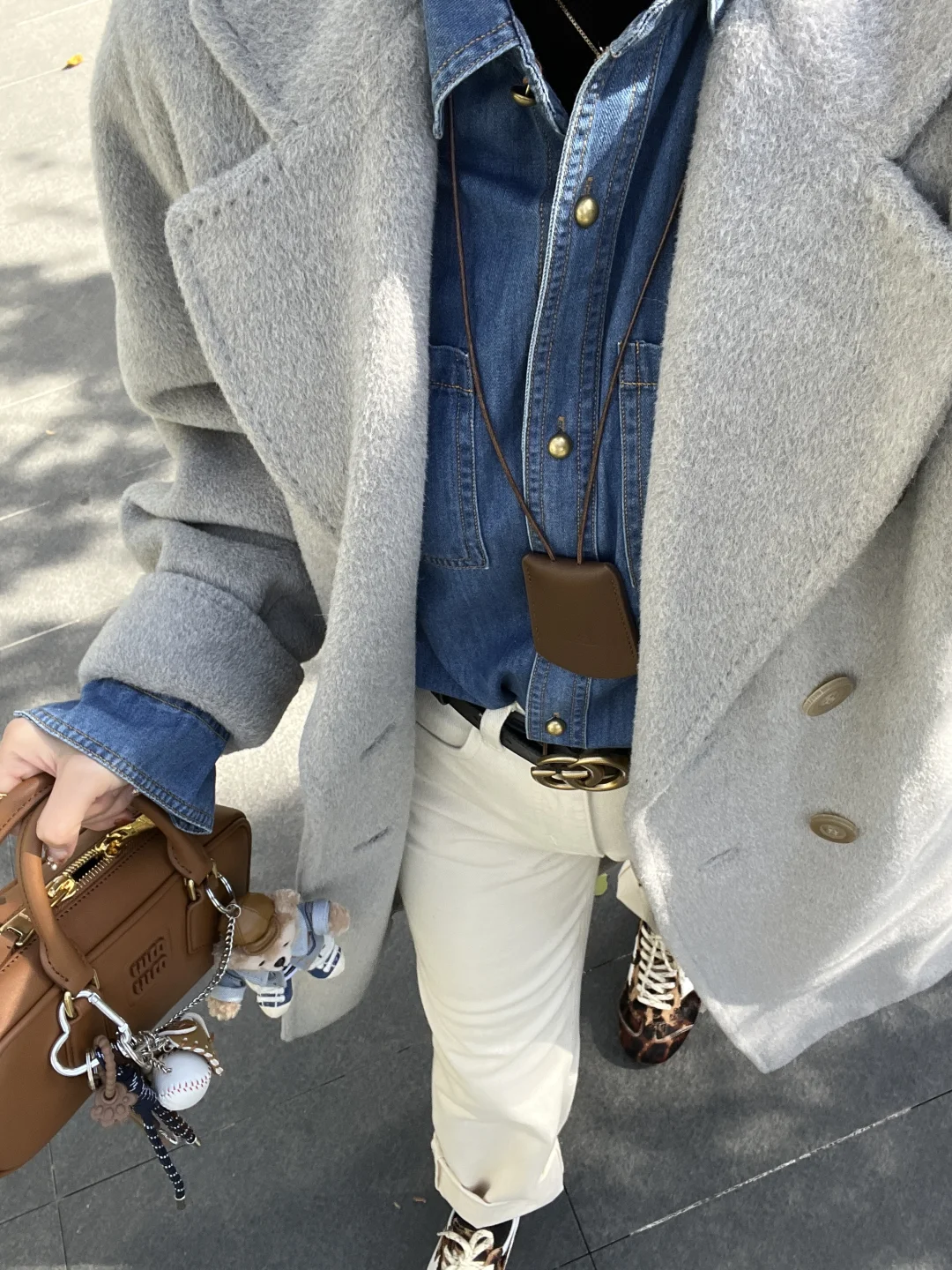 秋冬的安全感是灰色大衣给的!苏力大衣这么穿好时髦好韩! 咱就是说 牛仔衬衫配万物! ps:高领毛衣确实暖和🥵!江苏今年降温降的也忒晚了❄️🍁