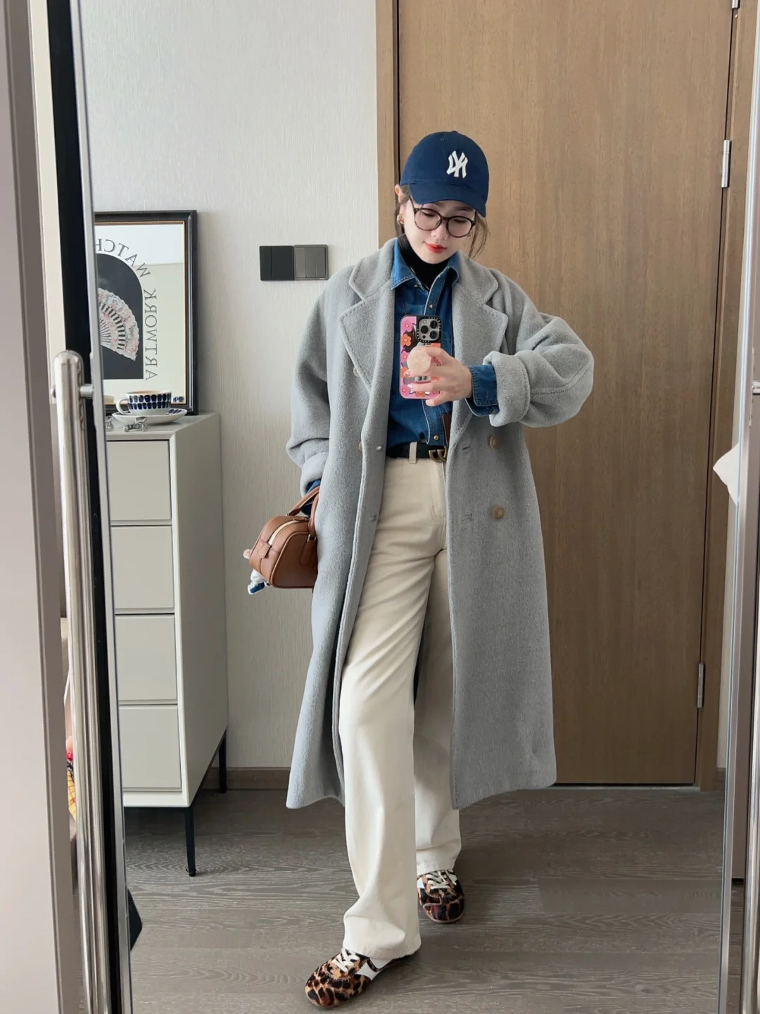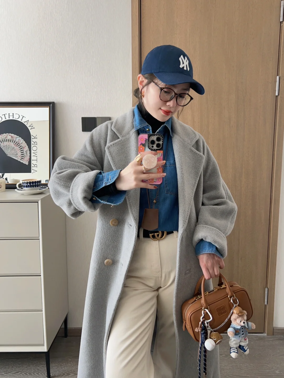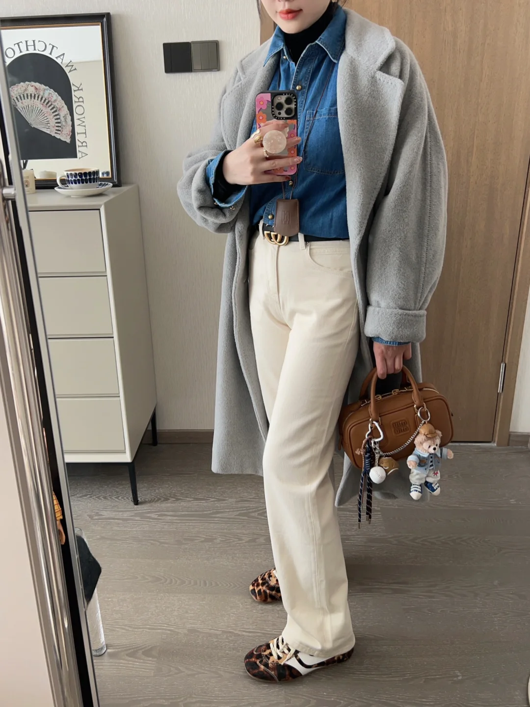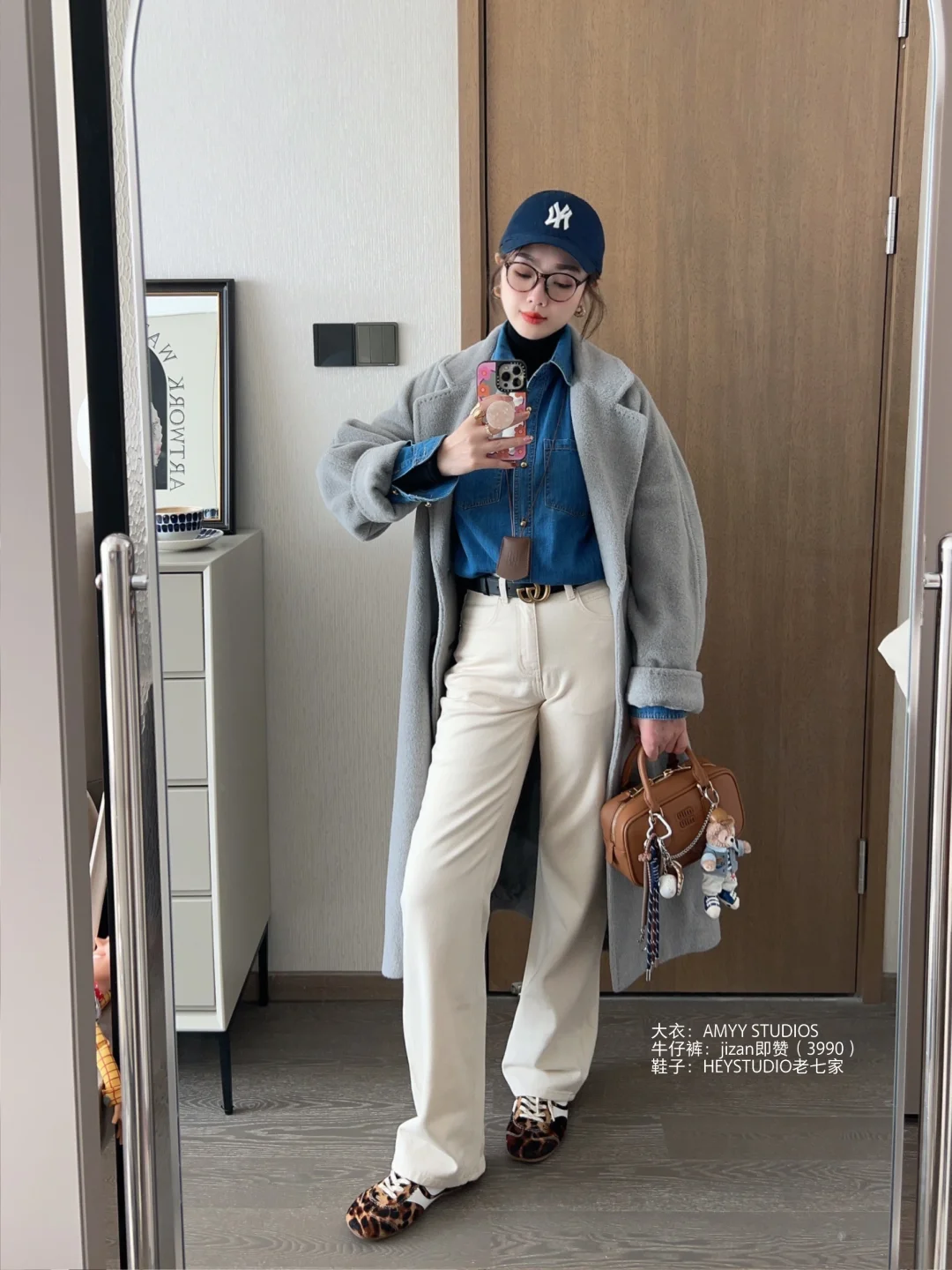 秋冬的安全感是灰色大衣给的!苏力大衣这么穿好时髦好韩! 咱就是说 牛仔衬衫配万物! ps:高领毛衣确实暖和🥵!江苏今年降温降的也忒晚了❄️🍁