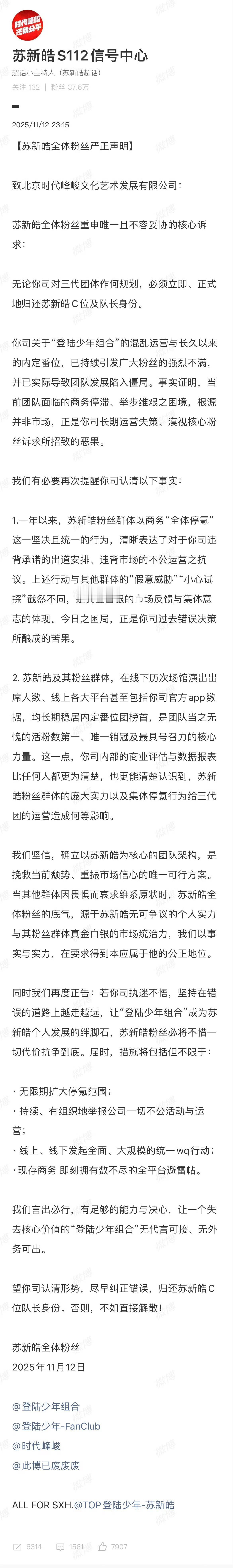 苏新皓粉丝的严正声明无论你司对三代团体作何规划,必须立即、正式地归还苏新皓C位及队长身份