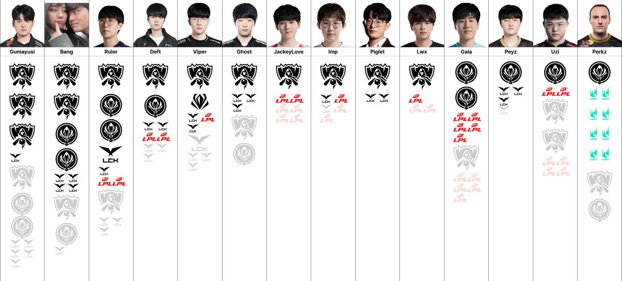 LOL下路AD选手荣誉图出炉,有你喜欢的选手吗? 史上最强,必然是刚夺冠的gu