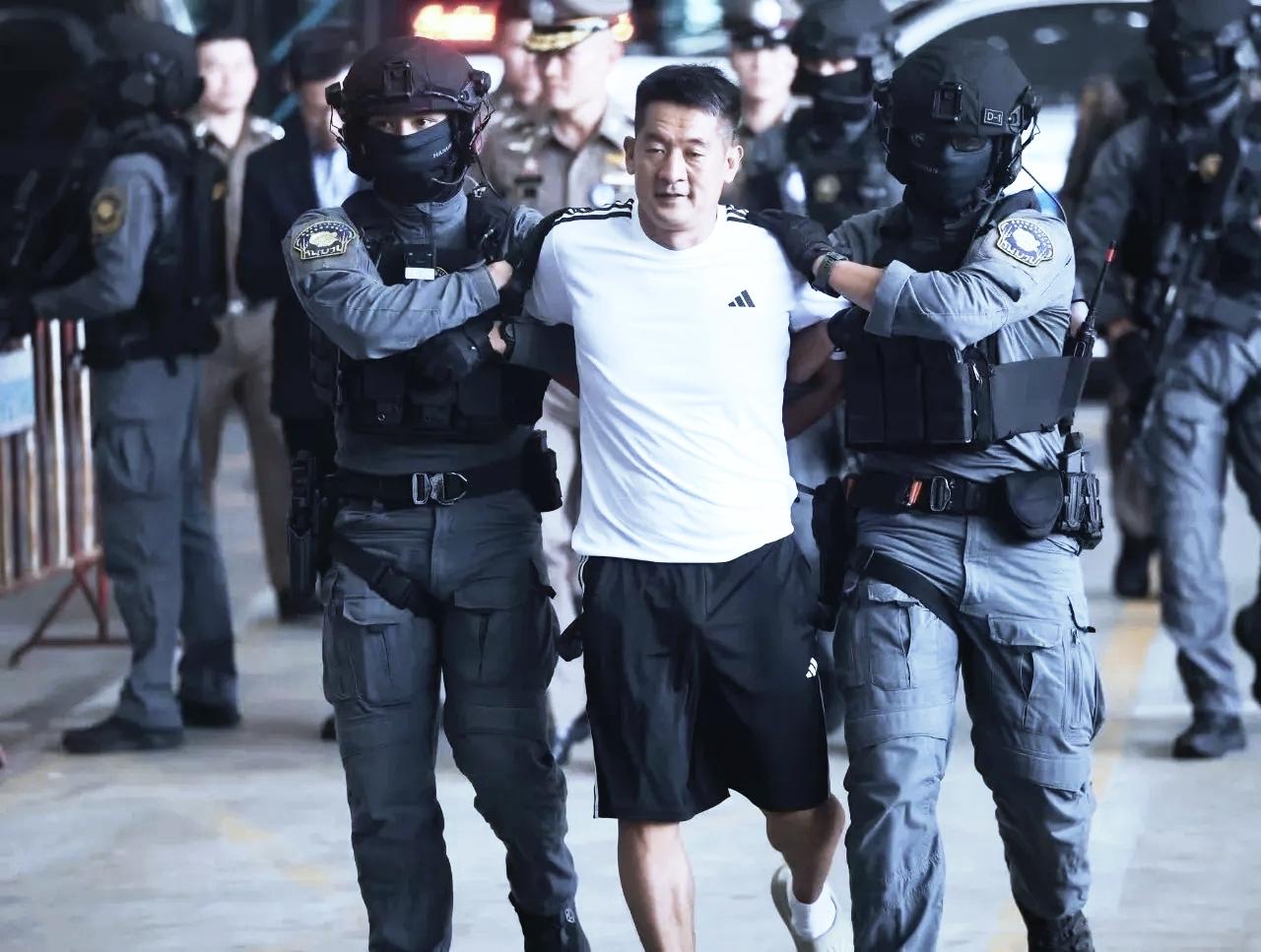 当地时间11月12日, 泰国警方于12时45分将邵东籍嫌疑人佘智江押解至曼谷素万那普机场, 随后在16时20分将其送上返程航班, 正式引渡回中国。