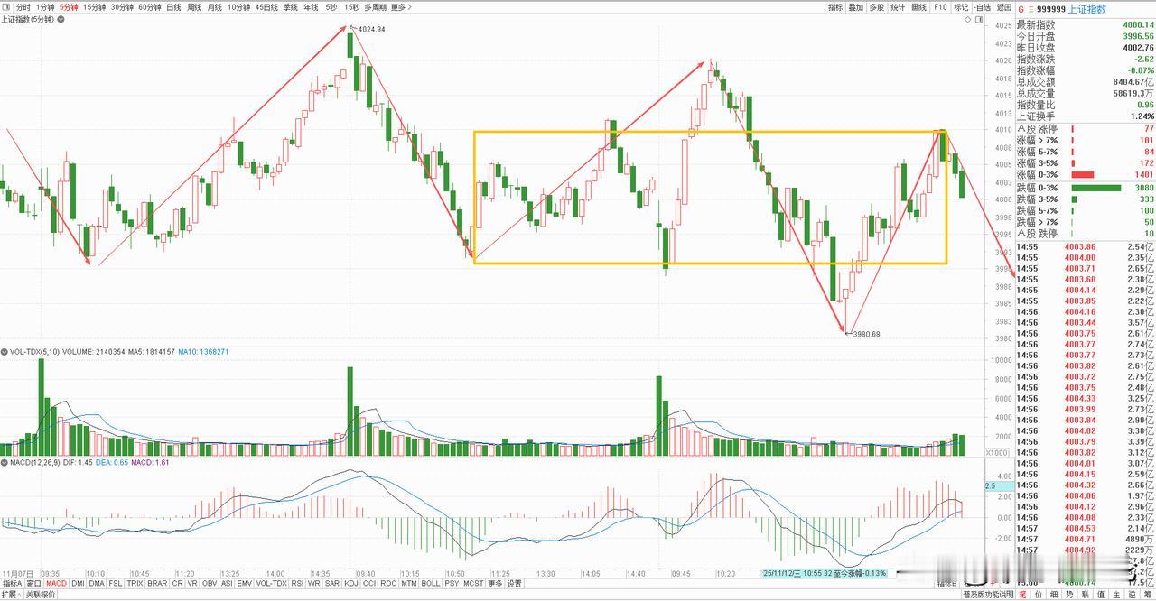 大盘在4000点附近是钝刀子割肉?还是蓄意向上突破?就看3995点的得失,一旦这个位置被有效跌破,那整个短线结构就要彻底转空。反之,一旦向上完成对4020点附近的有效突破,那也将完成向上变盘。