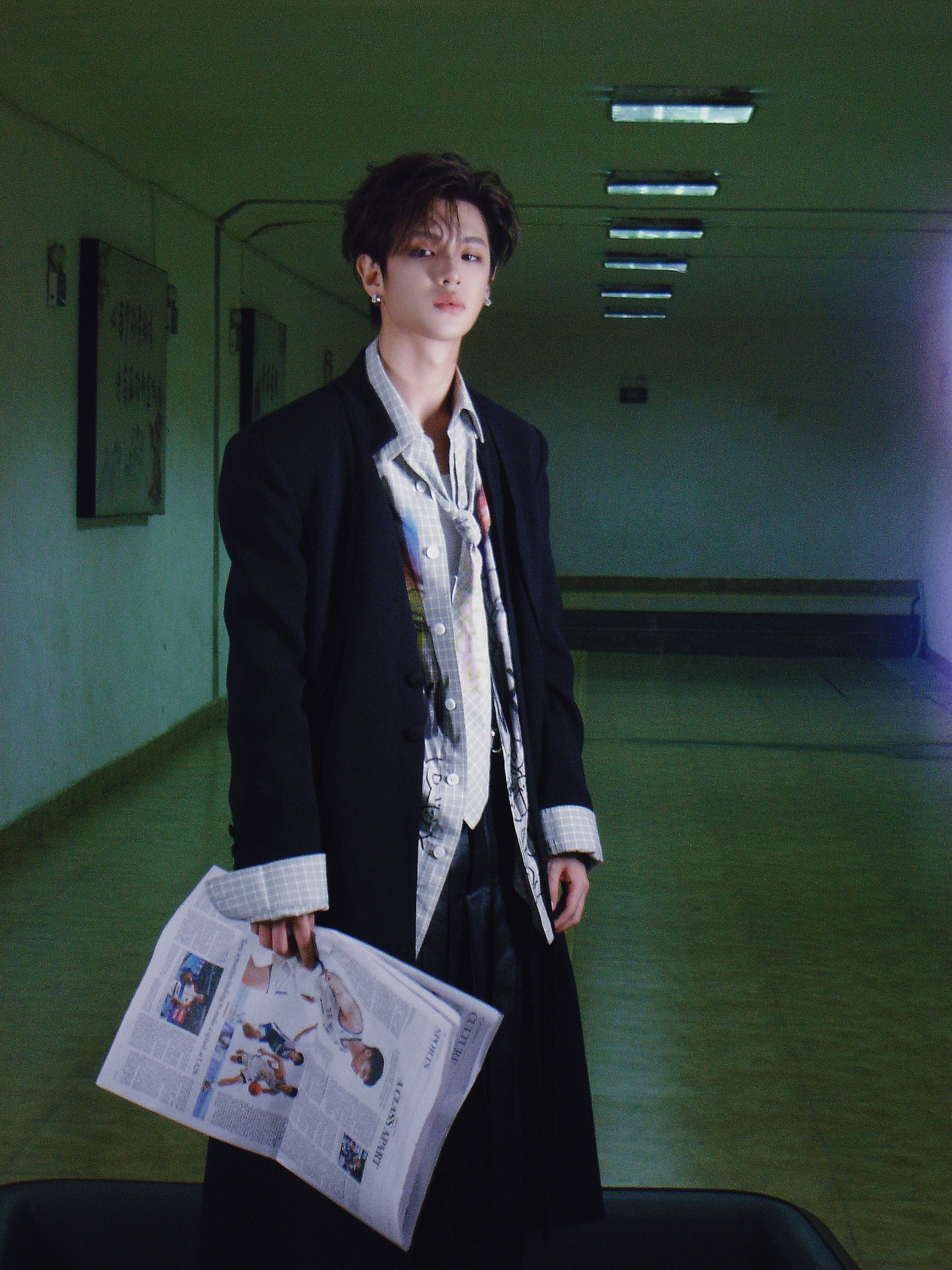 张康乐吃早饭随拍📷黑色look好帅,锁骨鲨🈶还没醒ing