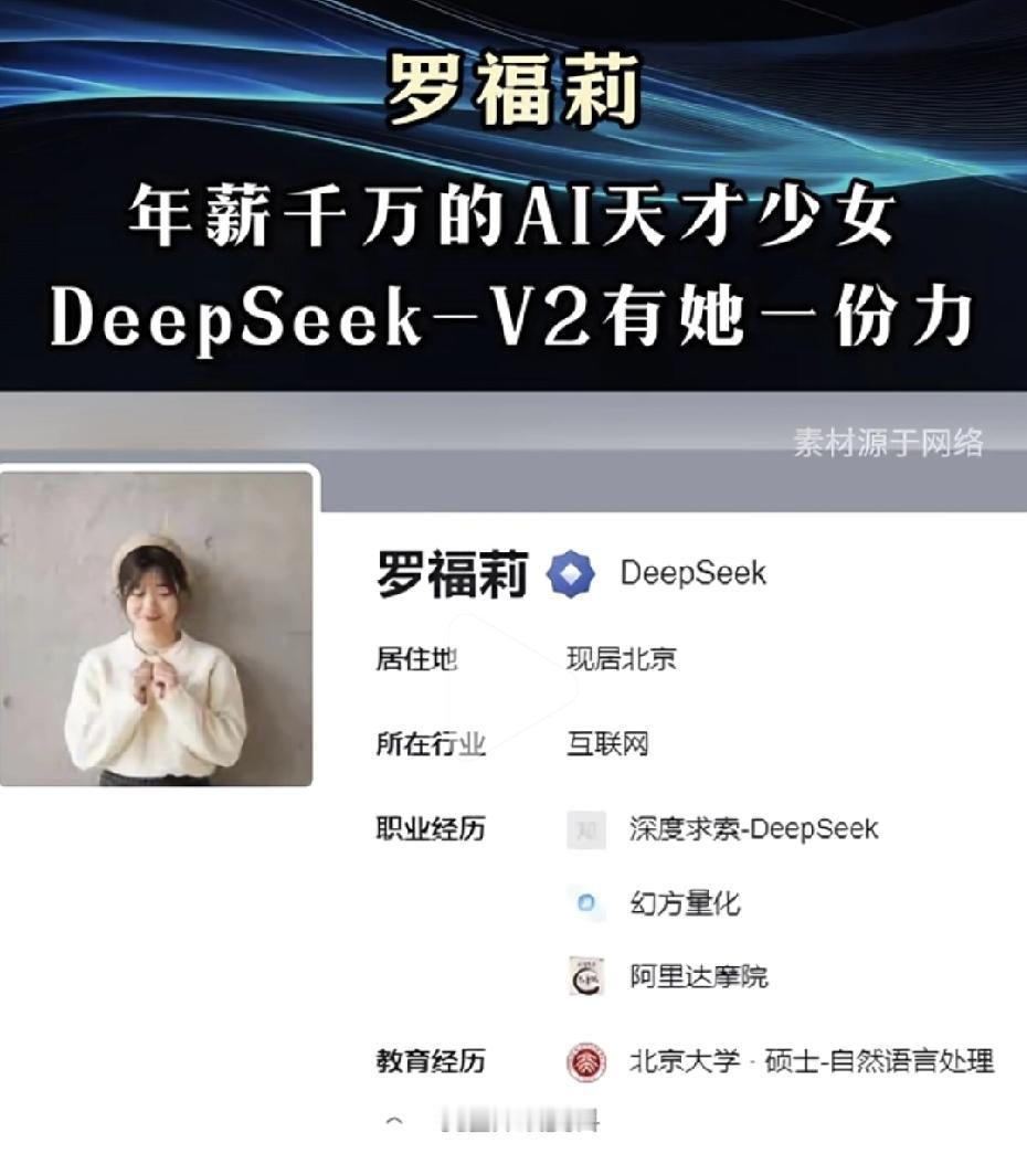 雷军曾用千万年薪邀她去小米 这个小姑娘是名副其实的圈王[赞] 是 DeepSeek关键开发者, AI界的95后天才少女![比心] 如今入职小米了! 太羡慕她的家长了 也敬佩她努力拼搏的精神 是所有年轻人的榜样! 少年强则中国强 愿我们国家有越来越多这样的人才[比心]