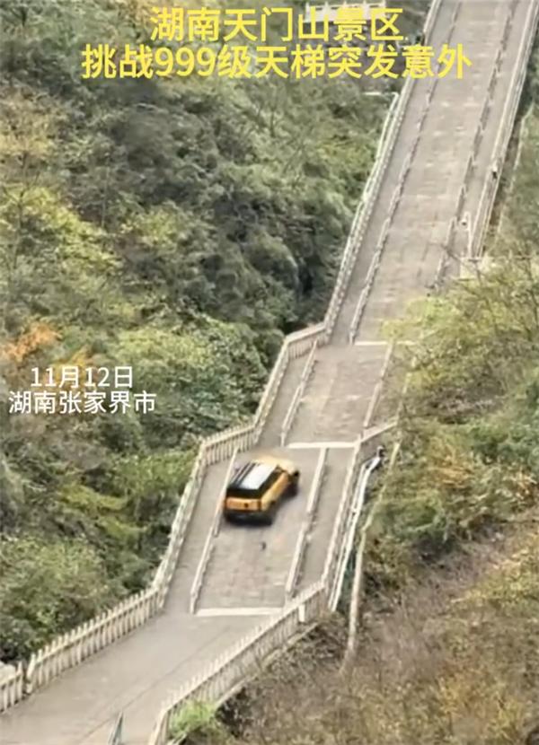 11月12日的张家界天门山,硬生生被一辆黄色SUV整成了大型"社死现场"——奇瑞刚上市俩月的风云X3L,在挑战999级天梯时突然溜车,哐当撞断护栏,把"极限挑战"玩成了"极限刹车"! 先给没吃瓜的朋友补个背景:这天门山天梯可不是普通台阶,150米垂直落差、30厘米窄台阶还带湿滑Buff,平均45°坡度(局部超60°),堪称"汽车界的魔鬼跑步机"。人家路虎2018年在这创下过9分51秒登顶的神话,奇瑞大概是想续写传奇,结果风云X3L刚往上冲了没多远,就突然掉了链子。 现场视频里老刺激了:车子冒着白烟往上爬,观众正屏息凝神等欢呼,突然"嘎嘣"一声——安全防护绳的卸扣居然脱落了,还精准缠绕住右侧车轮,直接给车子整了个"急刹车+倒车档"!顺着天梯往下滑的过程中,护栏被撞得节节败退,最终停在半路动弹不得,现场观众的惊呼声比汽车马达声还响亮。 网友们的评论区早就笑不活了:"本来想靠挑战圈粉,结果一滑成名,全国人民都记住风云X3L了,比广告管用10倍"“对标路虎没成功,倒给护栏来了个亲密接触,这是给景区‘鞠躬致歉’的提前演练?”“鲲鹏动力在市区挺能打,到了天梯怎么就‘动力中断’?怕不是被台阶的陡峭给劝退了”。 13日凌晨奇瑞的致歉声明算是把来龙去脉说清了:不是车子动力不行,是防护绳卸扣掉了缠到车轮,属于意外中的意外 。还承诺会全力修复护栏、承担赔偿,态度倒是挺诚恳。不过网友们还是忍不住调侃:"下次挑战前能不能先给防护绳做个体检?"“这10.99万起的售价,难道不包含‘防溜车套餐’?” 话说回来,天门山天梯连进口越野车都鲜少挑战,奇瑞敢带着刚上市的新车冲一波,勇气确实可嘉。只是极限营销有风险,毕竟景区护栏经不住这么"猛撞",游客的游玩体验也受影响——为了活动两天不让游客走天梯,多少人错过了打卡机会 。 最后想问:你觉得这次是风云X3L"运气不佳",还是奇瑞的营销策划少了点周全?要不要蹲一波奇瑞修复护栏后的"二刷挑战"?评论区聊聊~【来自懂车帝车友圈】