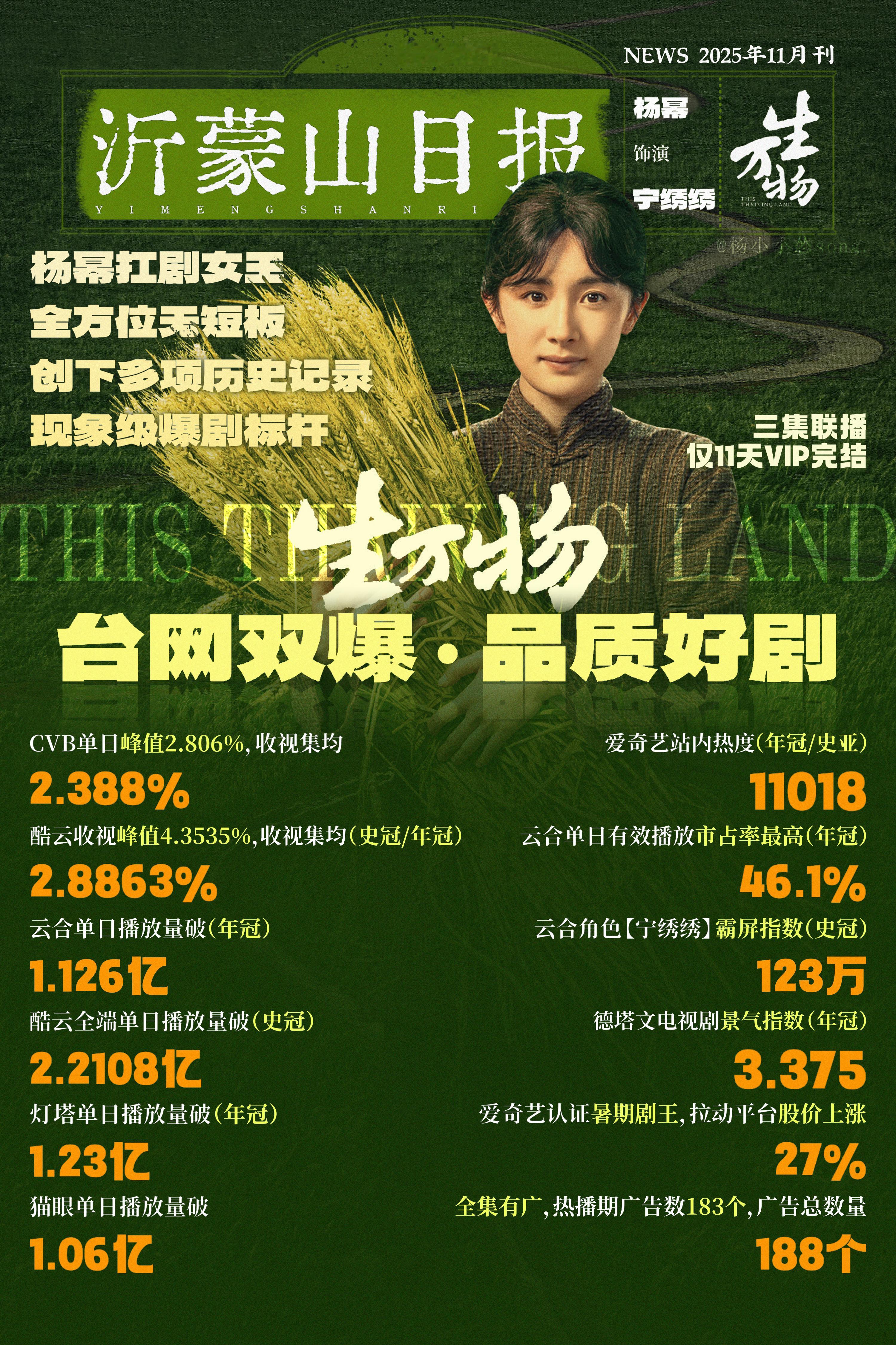 杨幂生万物全集有广招商TOP!热播期广告数183个,完结3月后再加5广,总计37个品牌,广告数188个,1347秒